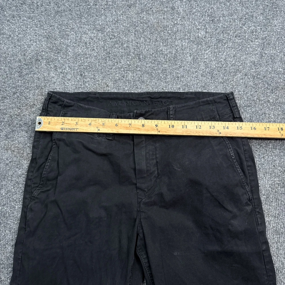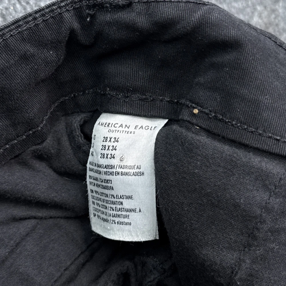 Type: Pants Fabric Type: Canvas Handmade: No Accents: Button Personalize: No Leg Style: Skinny Season: Fall, Spring, Summer, Winter Features: Stretch Waist Size: 28 in Style: Chino Occasion: Casual Pocket Type: Slash Pocket Garment Care: Machine Washable Department: Men Closure: Button Front Type: Flat Front Brand: American Eagle Outfitters Color: Black Pattern: Solid Vintage: No Size: 28 Rise: Mid (10-12 in) Size Type: Regular Material: Cotton Fit: Regular Inseam: 34 in