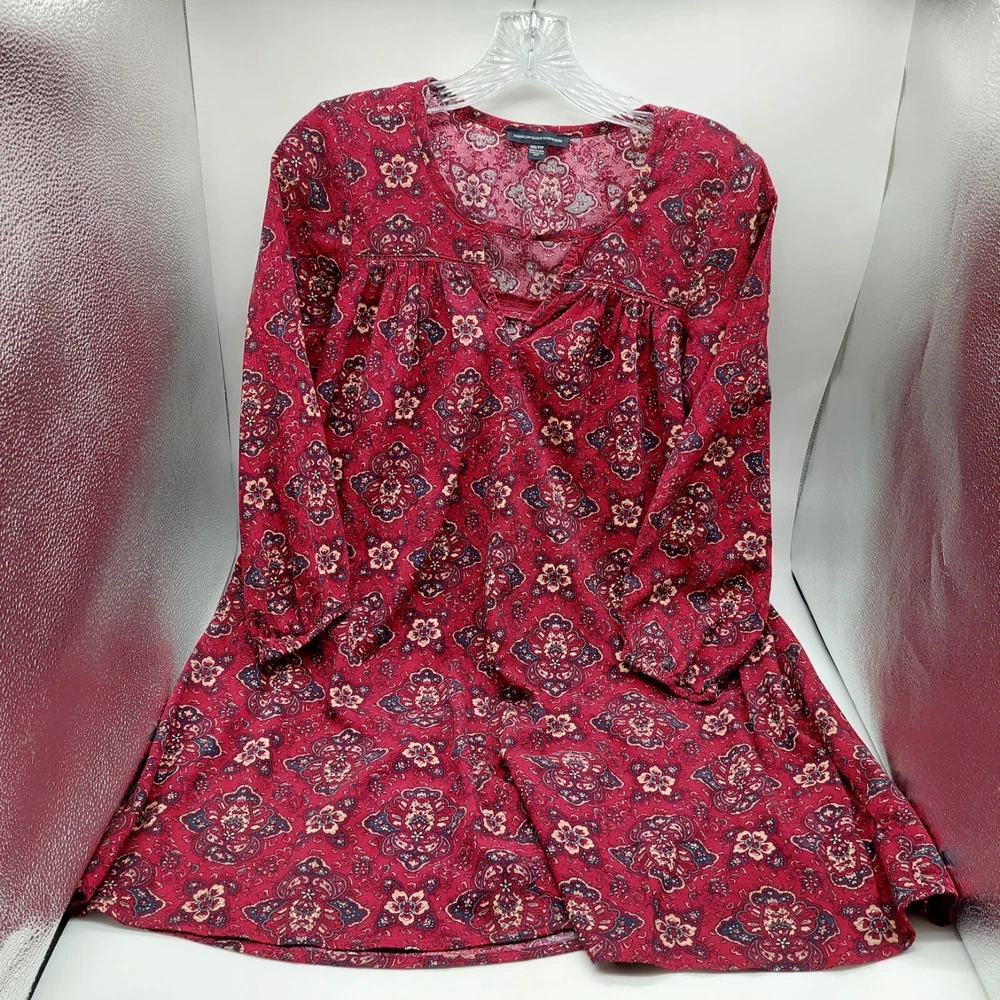 American Eagle Women's Size XXS Red Dress Flare Floral Printed Keyhole Tunic