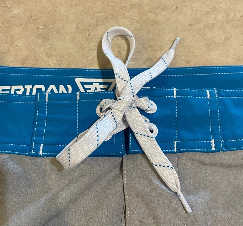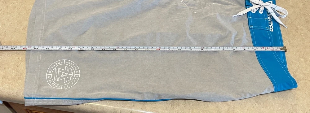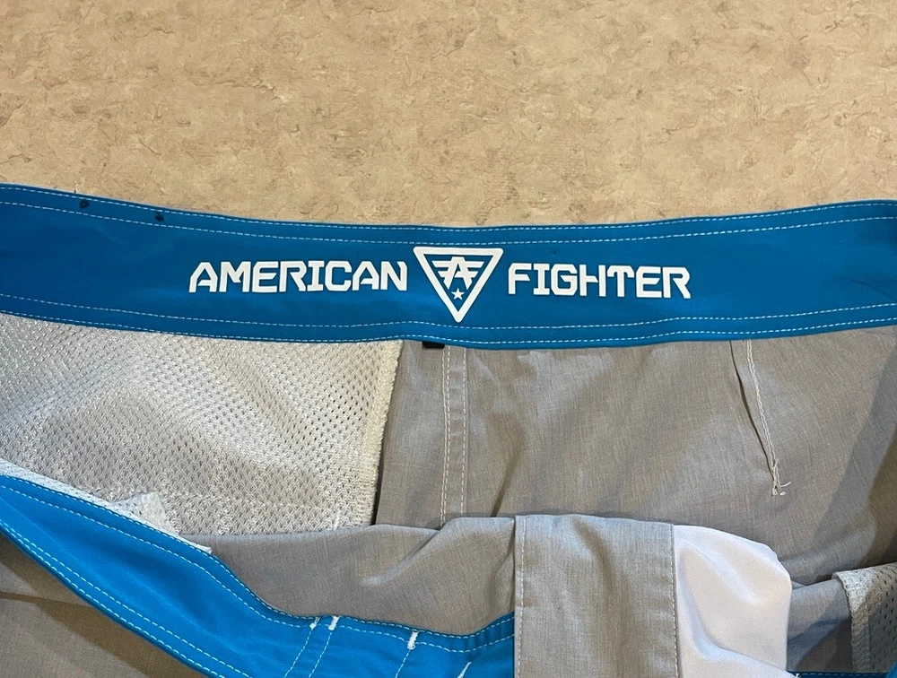 Experience the ultimate comfort and style with these American Fighter Board Shorts. Designed with a solid pattern in a sleek gray color, these board shorts are perfect for your next beach adventure. The material is a blend of polyester and spandex, making them breathable, stretchable, and machine washable. Featuring a tie closure and a back pocket, these board shorts are not just stylish but also functional. Suitable for surfing, these shorts are perfect for men who love to hit the beach in style. Get ready to make a fashion statement with these American Fighter Board Shorts. These shorts are in good preowned condition, please see ALL photos for a better idea on condition, any measurements, or details to the shorts.