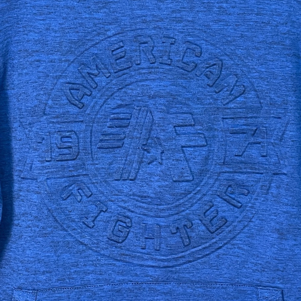 American Fighter Buckle Hoodie Men Size L Blue Embossed Moto Pullover Flawed