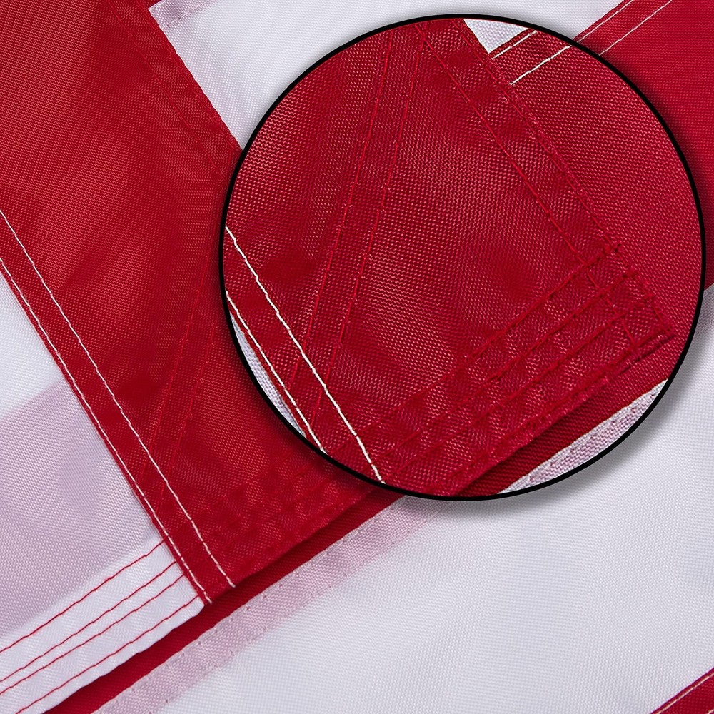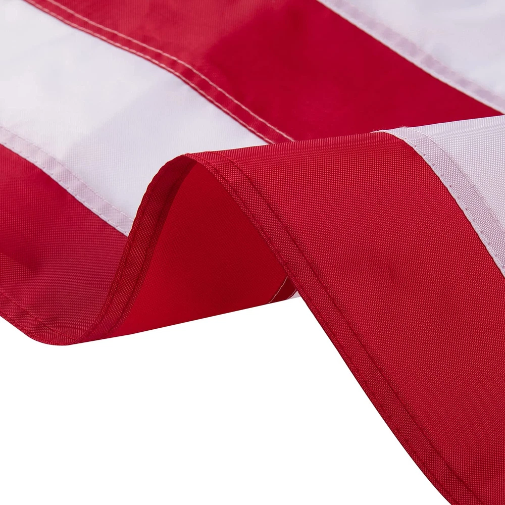 HighQuality materials: U.S Flag Made of heavyweight 420D nylon material. Adopt 50 embroidered stars, 13 stitched white and red stripes, heavy brass buttonhole and four-point needle flying hem, To prevent the flag from fraying and tearing.suitable for all harsh outdoor weather. Unique Advantages: Anti-fading dyes can be used for long-lasting bright colors. Double-layer cloth is used at the two corners of the flag to make it more durable. Size: 3 5. Foot. UNIQUE ADVANTAGES: In order to make the flag stronger, we use cloth flag with double layer angle on the two corners of the flag, so that the flag can fly in the air for a longer time. This is our advantage. QUALITY MATERIAL: This outdoor 3 x5 foot American flag is made of 420D nylon, which is thicker than ordinary 210D, and it is tear-resistant and helps to withstand harsh outdoor environments. The flag has been specially processed and can be dried quickly! PROFESSIONAL CRAFT: 50 embroidered stars, stripes stitched on the cloth, heavy brass buttonholes and four-point needle flying hem, and provide a high degree of UV protection to prevent fading. When you put the flag in your hand, you will feel the amazing workmanship of this American flag. SCENE USE: The Usa flag is perfect symbol to show your pride while celebrating holidays like New Year's Day,Lincoln's Birthday,President's day,National Day, Menorial Day,Independence Day,Labor Day,Navy Day,Election Days,Thanksgiving Day,Christmas Day,and every day display.Whether you are celebrating a beautiful day or an important occasion. PROUD MOOD: It is very suitable for indoor and outdoor use, it will proudly show your patriotism and pride. You can hang it from the flagpole or hang it on the wall. This is a good gift for your relatives and friends. SATISFACTION : If you have any questions, please . Assurance to give you a satisfactory solution. Care instructions: Hand Wash Only