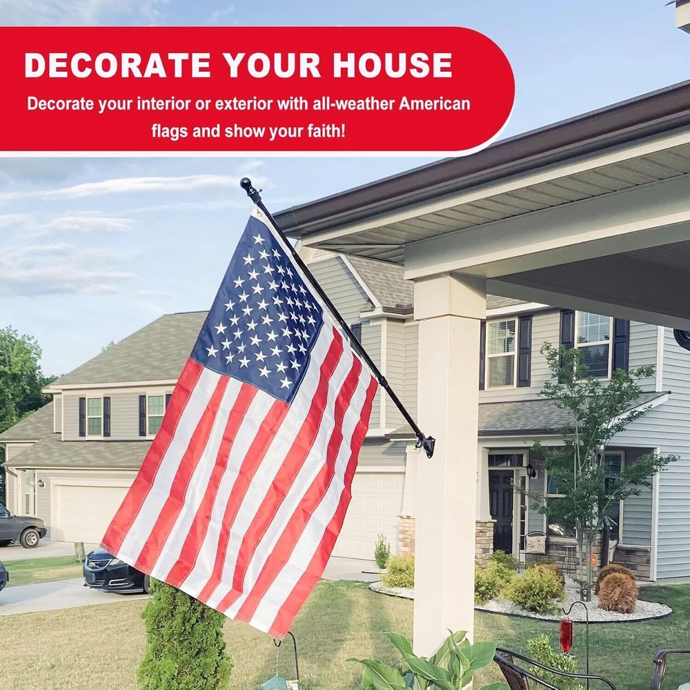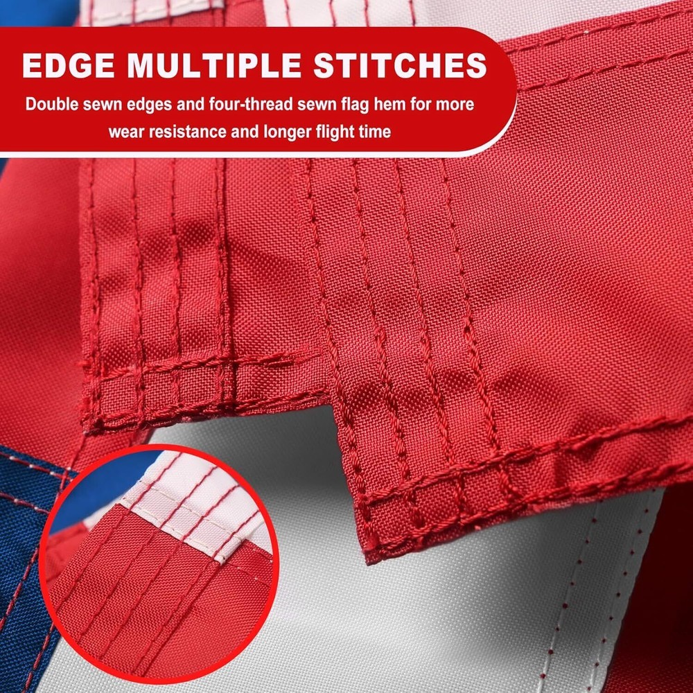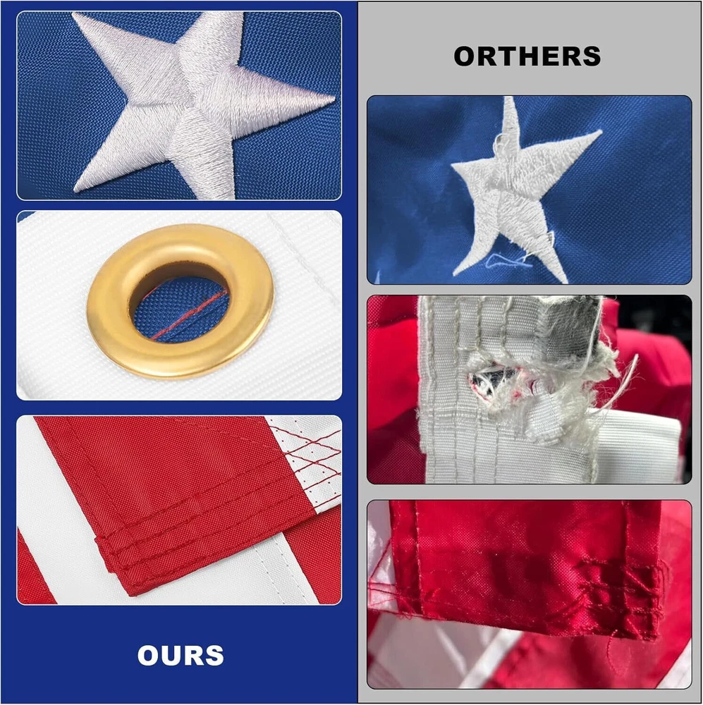 Features: American Flags For Outside 3x5 Version:We have deep-processed the American flag fabric, which has tenacious windproof and waterproof performance. It will make the flag show bright colors in different seasons, eye-catching, which will make you have an unspeakable sense of pride. Choose our 3x5 american flag 210D nylon, provide the best american flag best in usa, surprising quality, Let our patriotism be displayed American Flag 3'x5' Embroidered Stars Outdoor Made in Usa:Nylon 3x5 American Flag outdoor heavy duty consists of 50 densely embroidered stars and 13 thickened double-stitched stripes. All the edges of the USA flag are double-sewn, and the placket hem has 4 rows of reinforcement and is well made to prevent rapid tearing and wear and fraying, increasing the longevity of the US flag 3x5 American Flag Outdoor Heavy Duty:USA flags 3x5 outdoor, you can use it on any occasion, you can tie it to the car when you travel, and take it everywhere as a souvenir. At the same time, it can be used as a flag for outdoor farms, a commemorative event for family and friends, and a flag gift on the wall of the room. The decorative American flags, and you can hang the flags on the outside windows, corridors and flagpoles in front of the door. They are all very good flags displays Waterproof Uv Protection Coating Us Flag:The 3 x 5 outdoor American flag 210 D nylon is specially treated with a waterproof coating and UV resistant coating that allows the American flag to dry quickly, and even after prolonged exposure to the hot sun, USA flag has a vibrant color that keeps the US flag in good condition in any weather and free to fly outdoors all year round Best American Flag:Our American flag is a wonderful gift for veterans and patriotic families. At the same time, we are committed to bring the best shopping experience for customers and provide the best quality products at the best price. If you have any question about our American flags, you can feel free to contact us and we will give you a satisfactory answer within 24 hours Packages: 1*american flag 3x5 Embroidered Stars