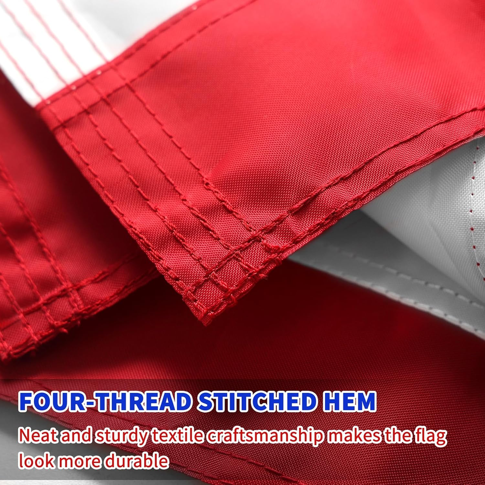 American USA Flag: American 100% American flag 5x8 outdoor is your American flag of the finest quality. The waterproof coating is the best choice for flying the flag in all weather conditions. Heavy duty outdoor 5x8 American flag, even being exposed to the hot sun for a long time, can still remain its bright color. Your best outdoor flag. It will outlast your neighbors and stay alive as long as you need it! High Quality American Flag with Embroidered Stars: As the best 5x8 USA flag, it features 50 luxuriously embroidered stars and delicate stitches. Every shining star is embroidered with high-quality white thread. The exquisite stitching process makes the texture of the American flag better, which shows the craftsmanship of the manufacturer of the 5x8 American flag. American Flag of Solid Material: This flag is made of durable cotton-spun polyester synthetic materials treated by special processes. Such material is waterproof and anti-fading, which can maintain better toughness and prolong the service life of the flag. The American flag 5x8 outdoor is 100% in the United States with high quality, no damage or tear, very suitable for flying in all kinds of weather conditions. USA flags 5x8 outdoor 100% in USA high wind. Class A High Quality American Flag: We are committed to providing high-quality American flags outdoors, reflecting the honor and spirit of our country, and expressing our respect and pride for the American flag. There is no better way to express your patriotism than to fly our American flag. We strictly control every detail of the process, every American flag before shipment has completed a thorough quality inspection to provide reliable quality. Quality Service: You will receive the American flag with guarantee. We offer “a 120-day warranty”. If you have any problem with the flag, please feel free to contact us! Product Description
