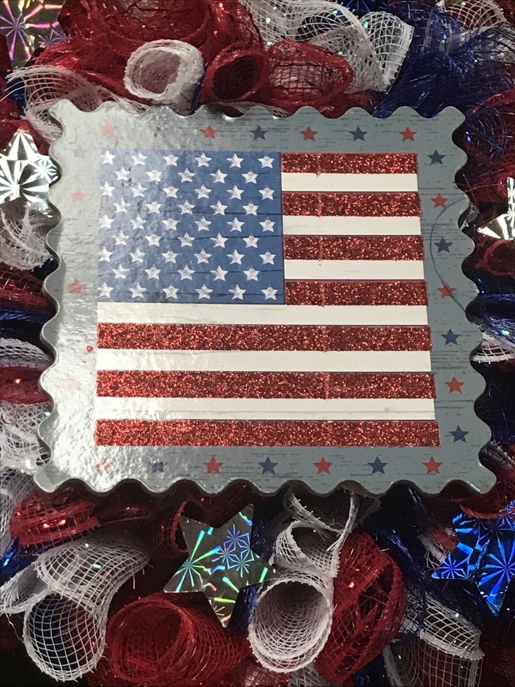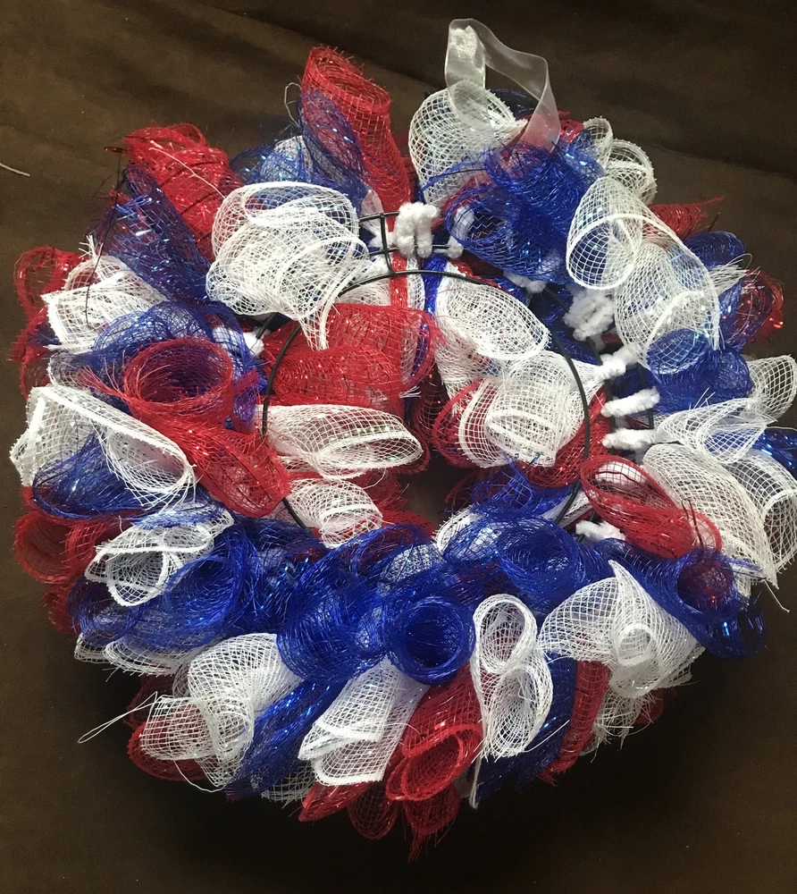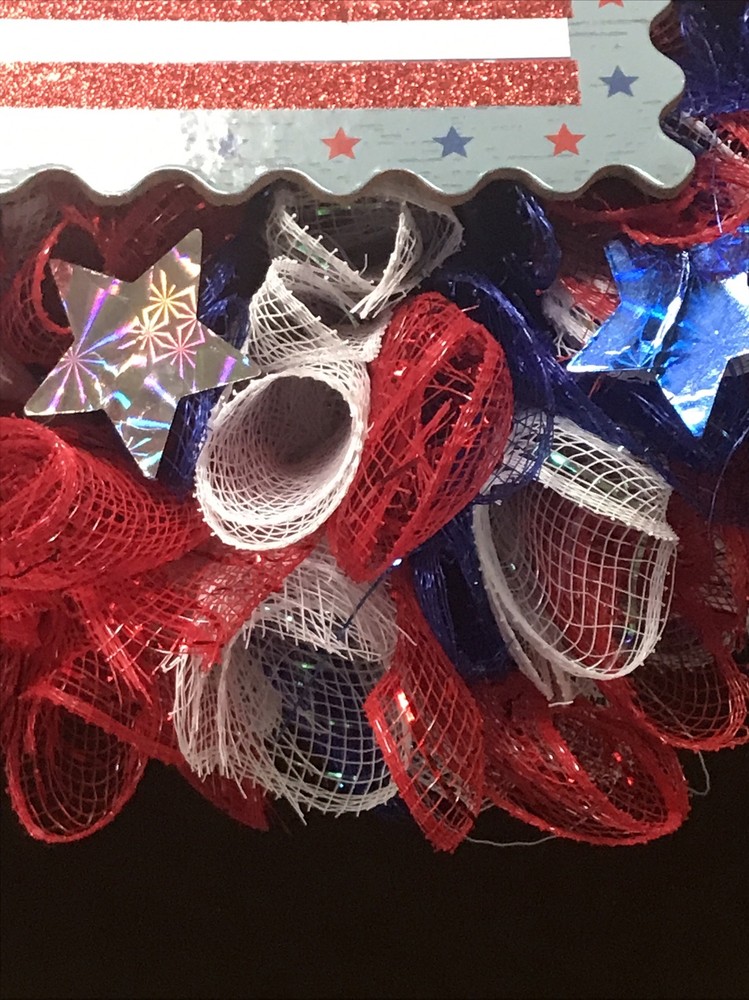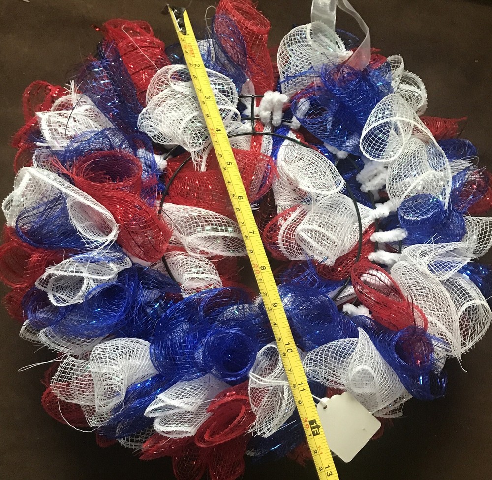 Patriotic Wreath For Front Door American Flag Independence Day Mesh Tulle Small Red, white, blue In excellent condition Thanks for your business Have a great day!