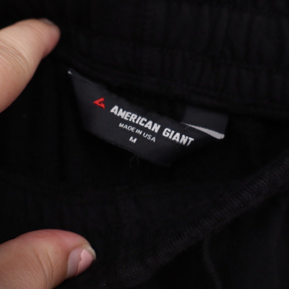 American Giant mens black sweatshorts size M. Crafted for comfort and durability, these shorts feature an elastic waistband with an adjustable drawstring for a personalized fit. Side pockets offer convenient storage. Perfect for casual wear, lounging at home, or light athletic activities. Measurements: • Waist: 16 in • Length: 21 in • Inseam: 9 in Department: Men Style: Sweat Performance/Activity: Cross Training, Basketball, Football, Running & Jogging, Walking Fabric Type: Jersey Features: Pockets, Drawstring, Elastic Waist Inseam: 9 in Fit: Relaxed Material: 100% Cotton Waist Size: 32 in Occasion: Activewear, Casual Pattern: Solid Closure: Drawstring Keywords: sweatshorts, athletic, loungewear, casual, cotton, drawstring, elastic waist, activewear, comfortable, menswear, athleisure, gym shorts, everyday wear All orders are shipped the same business day or the next business day. Thank you for supporting my small business.