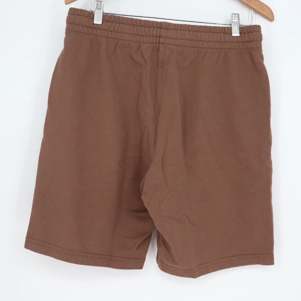 American Giant brown cotton sweat shorts. These comfortable shorts feature an elastic waistband with an adjustable drawstring for a customized fit. Two side pockets offer convenient storage. The classic silhouette makes them perfect for lounging at home or casual outings. Measurements: • Waist: 17 in • Length: 20 in • Inseam: 9 in Department: Unisex Adults Style: Sweat Performance/Activity: Gym & Training, Running & Jogging, Walking Theme: American Features: Elastic Waist, Drawstring, Pockets Inseam: 9 in Fit: Relaxed Material: 100% Cotton Waist Size: 35 in Occasion: Casual, Activewear Pattern: Solid Closure: Drawstring Season: Summer, Spring Keywords: American Giant, sweatshorts, brown shorts, lounge shorts, casual shorts, athletic wear, activewear, essentials, everyday wear, comfortable, drawstring shorts, mid-rise, summer shorts All orders are shipped the same business day or the next business day. Thank you for supporting my small business.
