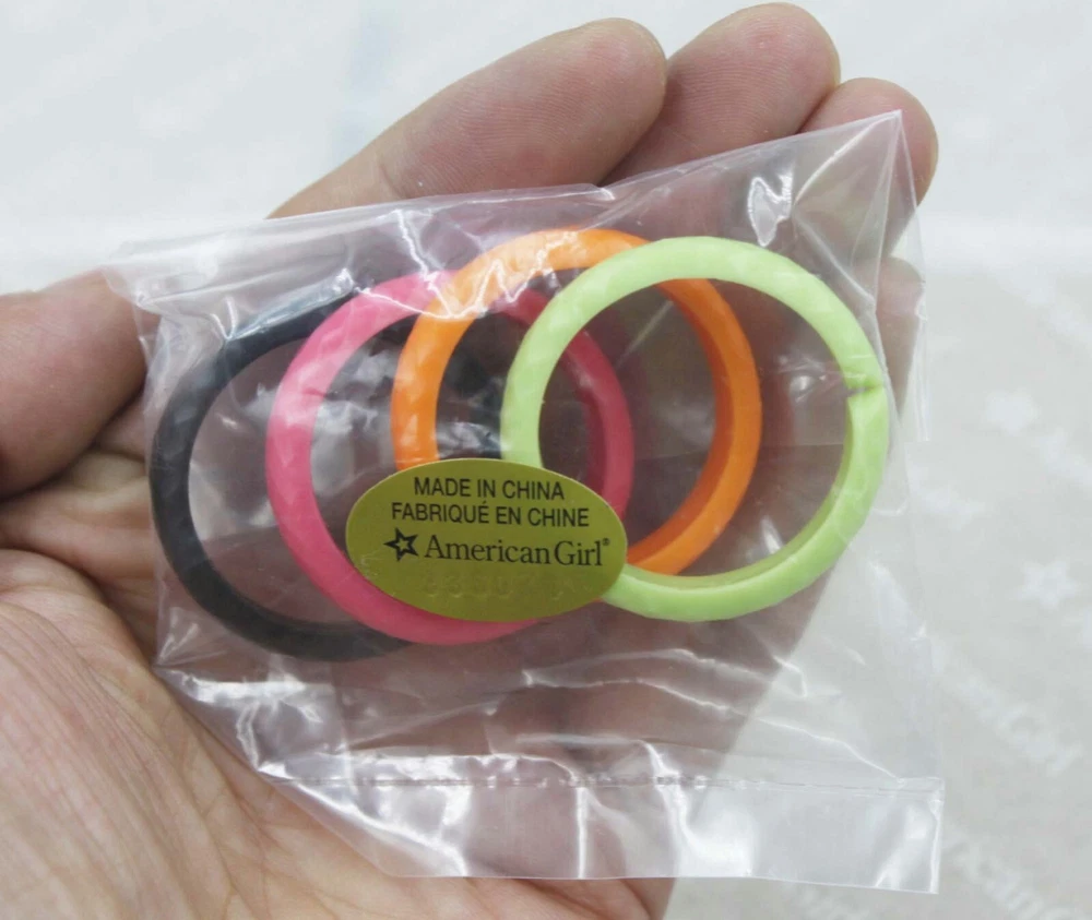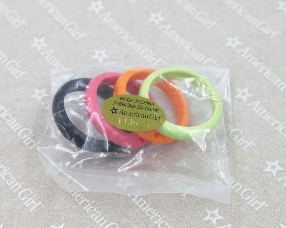 Shipping discount: Free shipping for orders over US $25.00,visit our store to add others items. Item Descriptions: Four different colored plastic bangle bracelets doll can stack on wrist (New sealed in original plastic wrapping) Brand: American girl Size: scaled for 18'' doll After sales: Any questions(such as broken、lost……) before you leave feedback please feel feel to contact us,we will do our best to solve it. Shipping details: Your item will be transported by SpeedPAK with tracking number,all can be tracked .(take 15-25 days to arrived)