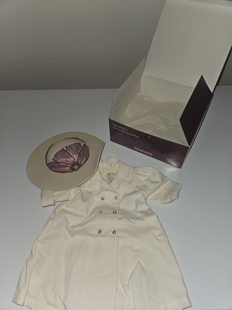 American Girl Doll, 18" - Samantha's Travel Duster And Hat White Velvet Duster White Velvet Hat +Packaging [14] Does NOT Include Doll