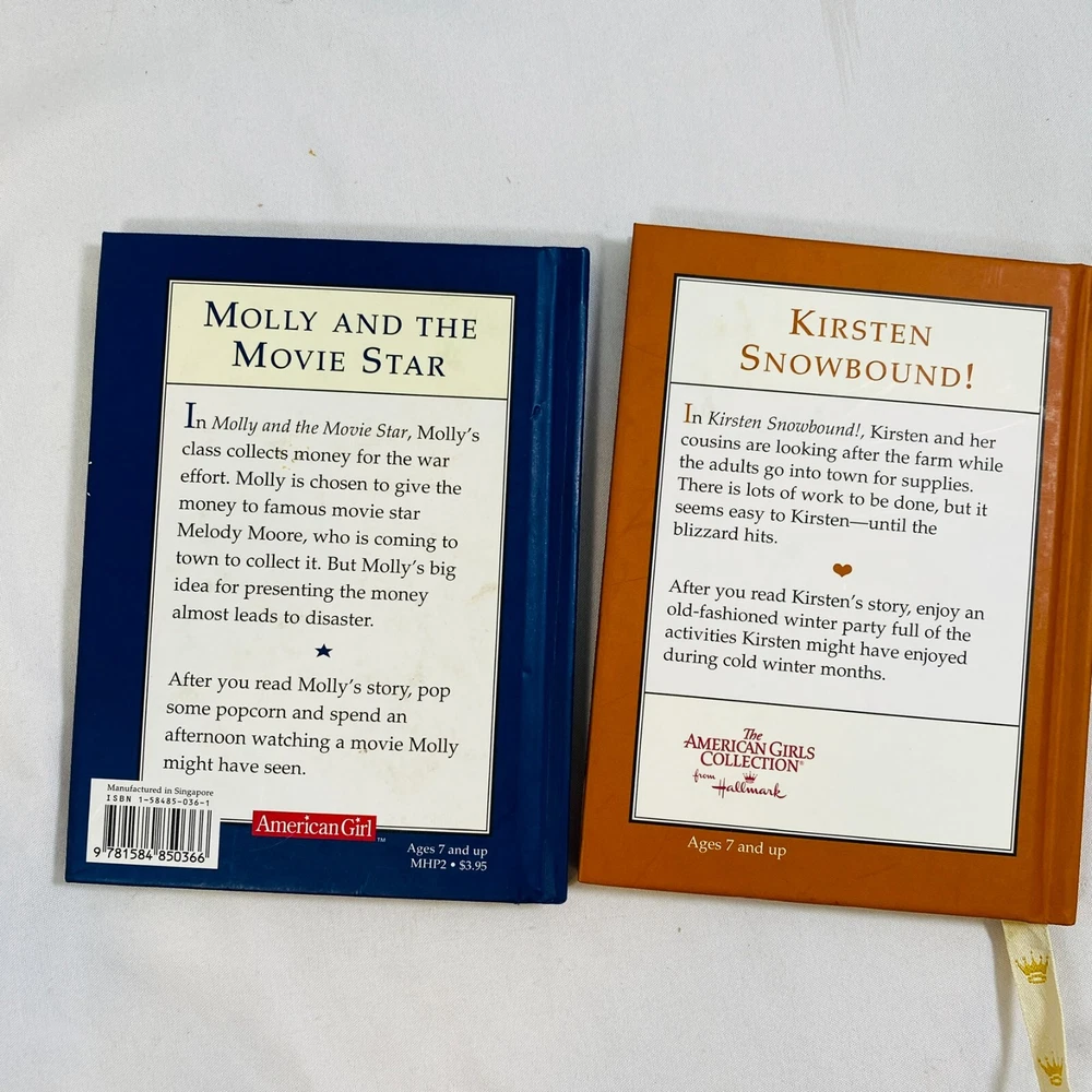 American Girl Doll Collection Hardcover Books - Set of 3. Includes the following titles: Dear America: The Diay of Pper Davis (not AG but similar in style/time-period) Molly and the Movie Star Short Storry Kirsten Snowbound! In like-new condition, no flaws to note. Please see all pictures for exact cosmetic condition and other details, as they are part of the description as well, and ask any questions before purchasing. We are a husband and wife team with a growing family, and greatly appreciate your support of our small business. Please browse our eBay store for a variety of other American Girl items, many reti red and hard to find. We hope you enjoy this special set!