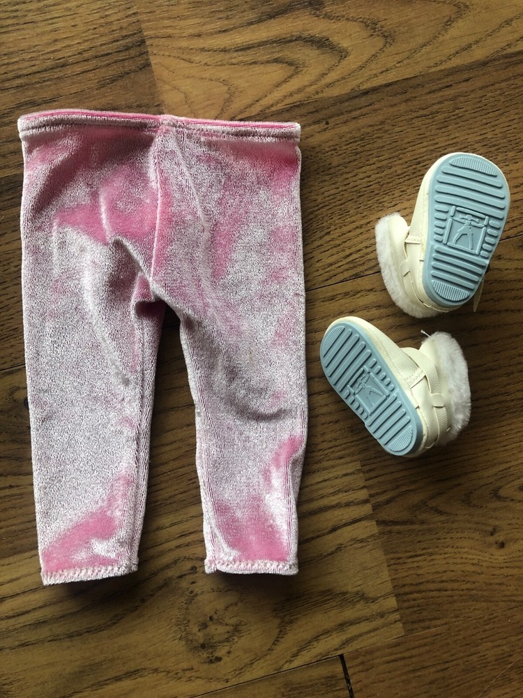 Dress your American Girl doll in style with this charming retired Snowball outfit, a delightful addition to any collection. The set includes cozy leggings and matching booties, perfect for all occasions. Crafted from quality cloth material in a delightful pink hue, this outfit is suitable for dolls sized 18 inches and is compatible with any character theme.This original set from the beloved American Girl franchise, manufactured in 1998 by Pleasant Company, is a testament to classic doll fashion. While not handmade or a custom bundle, it embodies the spirit of creativity and play that American Girl dolls are known for. Celebrate your love for vintage doll clothes and add a touch of nostalgia to your collection with this timeless ensemble.