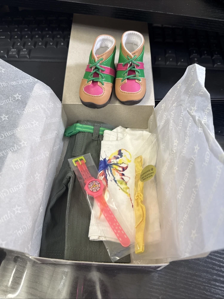 Doll Gender: Girl Doll Sport: Hiking Antique: No Franchise: american girl Doll Size: 18in. Type: Doll Color: Multicolor Original/Licensed Reproduction: Original Material: Cloth Product Type: Accessories Character: Saige, lea Age Level: 8-11 Years Doll Age Group: Adult, Teens, Youth Brand: American Girl Handmade: No Recommended Age Range: 8+ Time Period Manufactured: 2010-2019 Clothing Style: Activewear & Hobbies Vintage: No Compatible Doll Size: 18 in Set Includes: Outfit Features: Lightweight Doll Type: Play Doll Item Height: 18 in Clothing Type: Pants, Boots, Top, Headwear Number of Pieces: 5 Country/Region of Manufacture: China