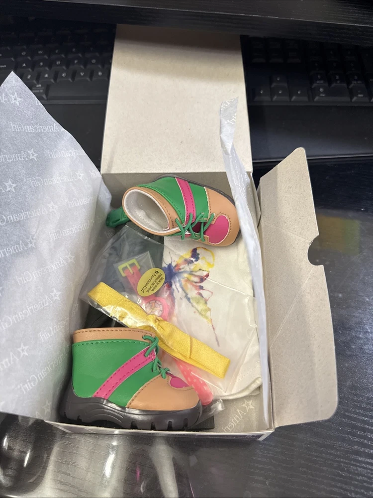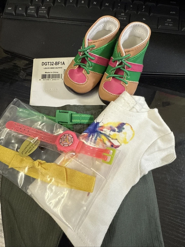 Take your American Girl doll on an adventure with Lea's Rainforest Hike Outfit. This activewear set, complete with a top, boots, headwear, and pants, is perfect for dolls sized 18 inches and up. It includes all the essentials for a day of hiking, with a stylish and practical design that's sure to delight. Whether you're dressing up your own doll or adding to a collection, this outfit is suitable for ages 8 and up. The set is made with care in China, and it's compatible with any 18-inch American Girl doll, including characters like Saige and Lea. The recommended age range is from 8 to adult, making it a versatile addition to any doll wardrobe. Doll not included.