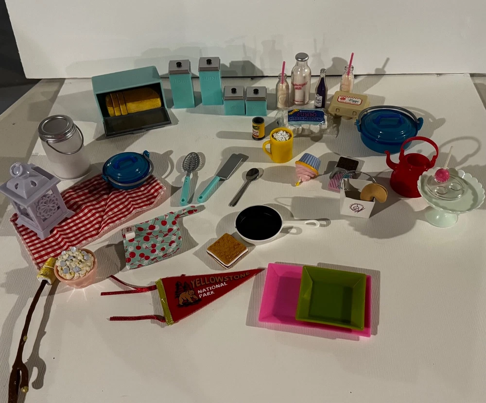 Brand: American Girl Character: MaryEllen Type: Vehicle Color: Silver Original/Licensed Reproduction: Original Material: Plastic Set Includes: Camper, Cushion, Kitchen items