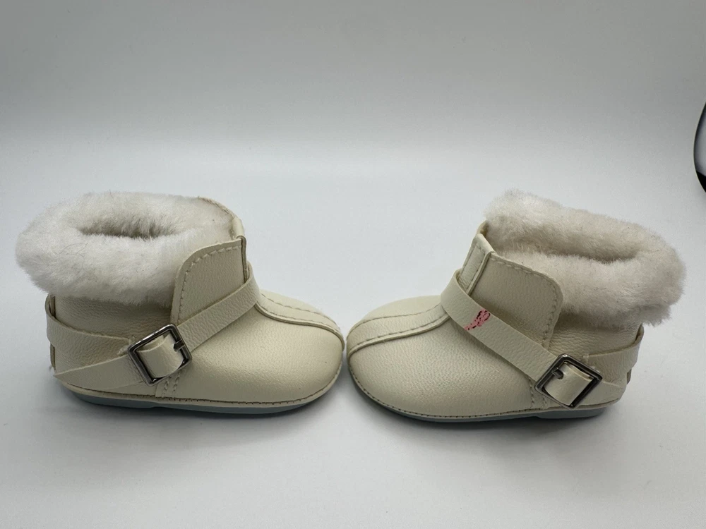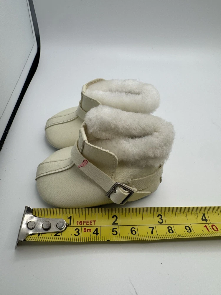 Preowned. American Girl Pleasant Company Jacket, Pink Leggings, Cream winter boots from American Girl Snowball outfit. Jacket leggings & shoes only. Good condition. But one of the boots has a marking on it as seen in photo. Please see photos for condition.