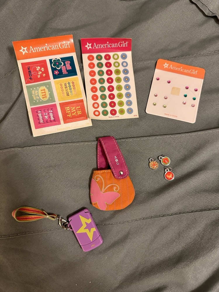 Snowy Chic outfit is complete with book, boots, mittens, hat and outfit. Outfit has some yellowing (see pics). Phone comes with carrying case and charm set is almost complete with a few gems missing but all stickers are there. Berry Beach Boots are brand new. All comes in original packaging with original tissue paper.