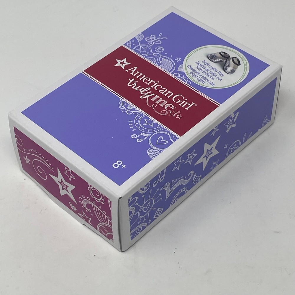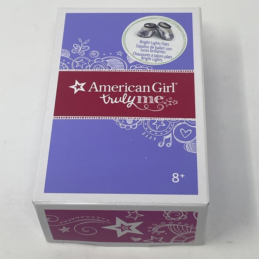 American Girl Doll Truly Me Bright Light Flats Released - 2018 Retired - 2019 These "Bright Lights Flats" comes in Original Box!! Includes: Original Box, American Girl Tissue Paper, and Silver Sparkle Shoes Please refer to the images as they are part of the description. Feel free to contact me with any questions. Doll Not Included