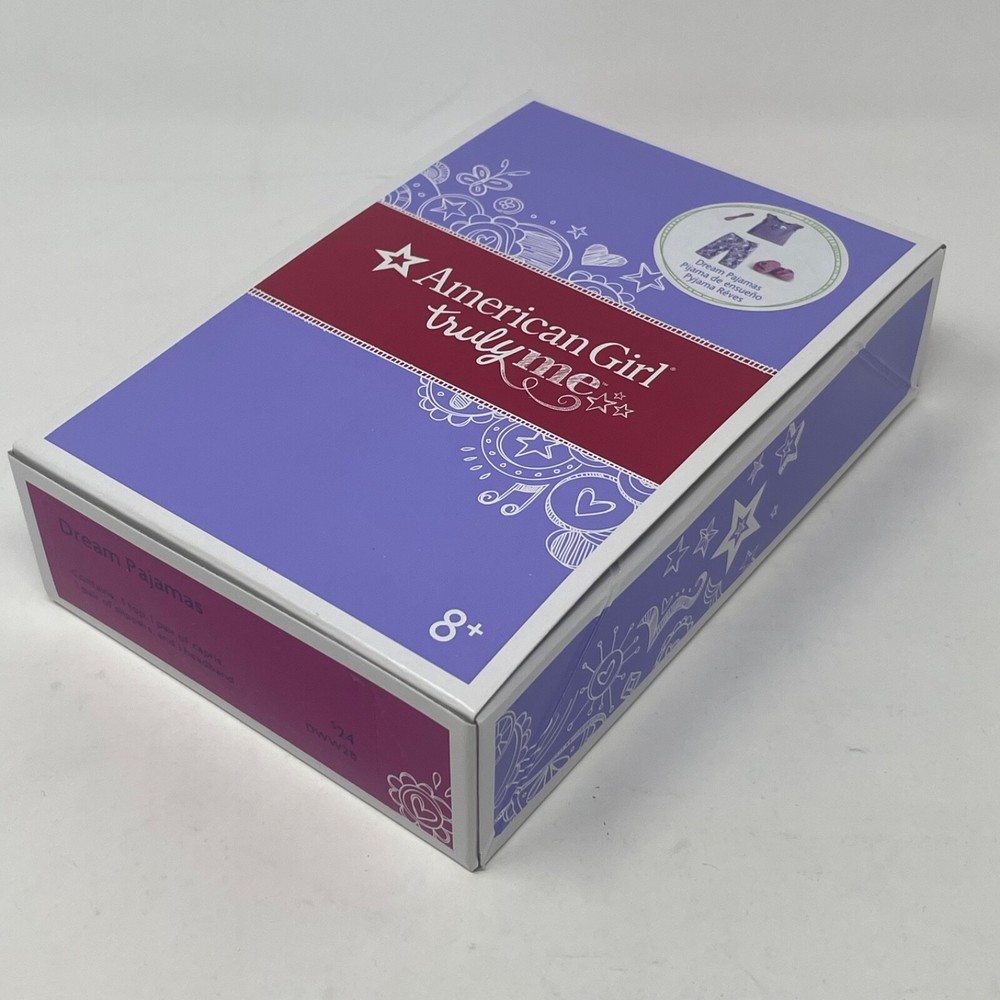 American Girl Doll Truly Me Dream Pajama Set Released - 2017 This "Dream" Pajama Set comes in Original Box!! Includes: Original Box, American Girl Tissue Paper, Top, Bottom and Slippers Headband is missing Please refer to the images as they are part of the description. Feel free to contact me with any questions. Doll Not Included