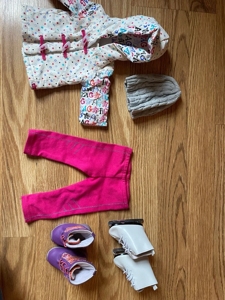 American Girl Doll Winter Outfit: super cute, contains jacket, hat, ice skates, winter boots and tights!