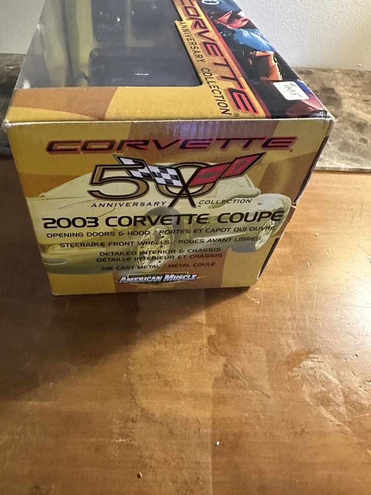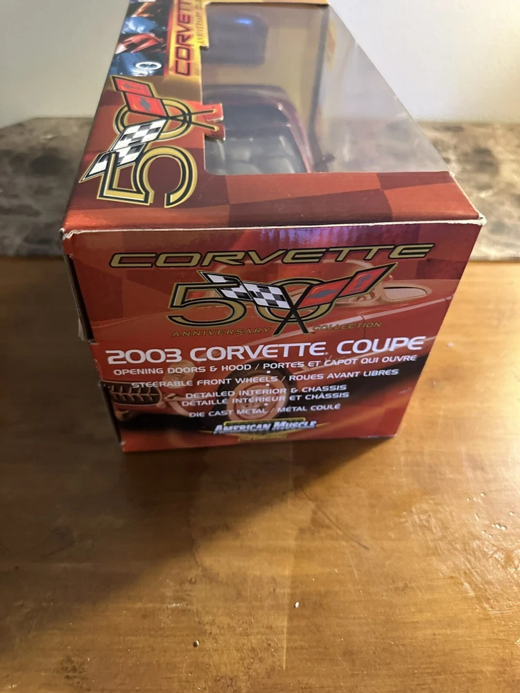 The American Muscle Corvette Collection 2003 Corvette Coupe is a 1:18 scale diecast car produced by Ertl Collectibles. This ERTL American Muscle model in red is part of the Corvette Collection series, featuring a detailed replica of a 2003 Corvette Coupe. The car is a part of the Cars character family and is a popular choice for collectors and enthusiasts of contemporary diecast vehicles.