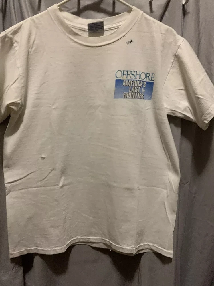 American Offshore Boat Shirt Adult Medium White Short Sleeve Lost Frontier Men’s