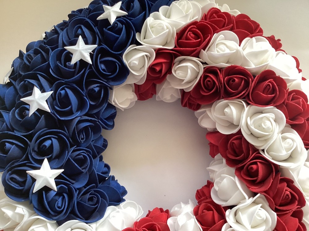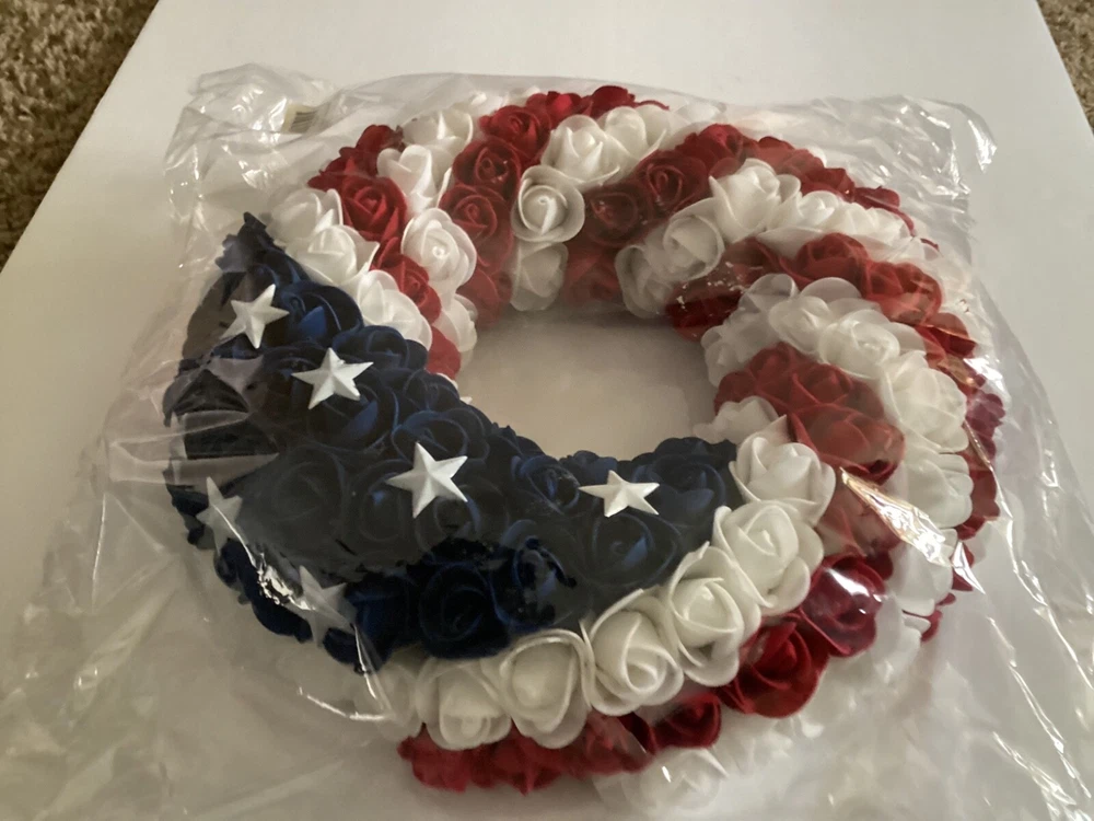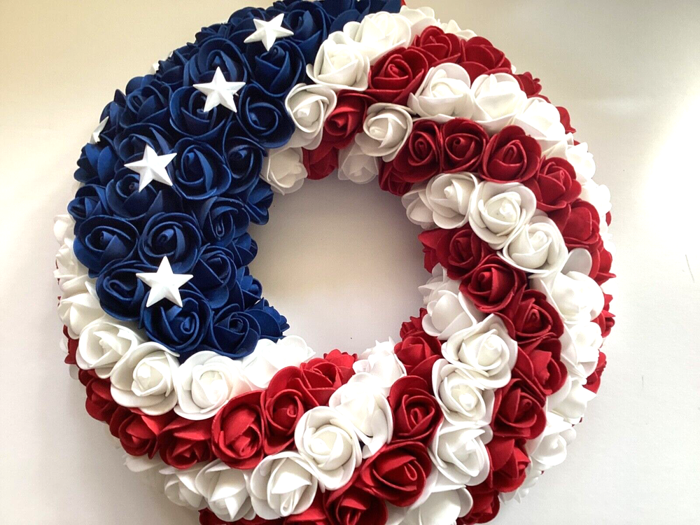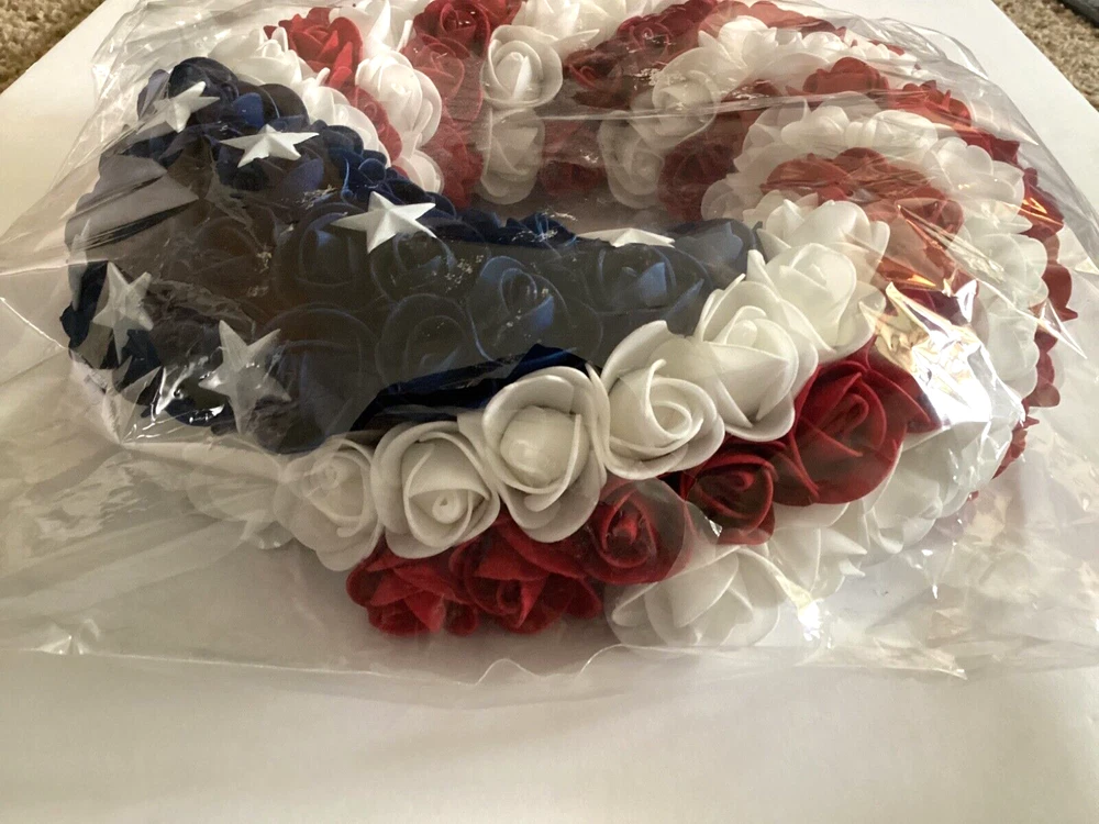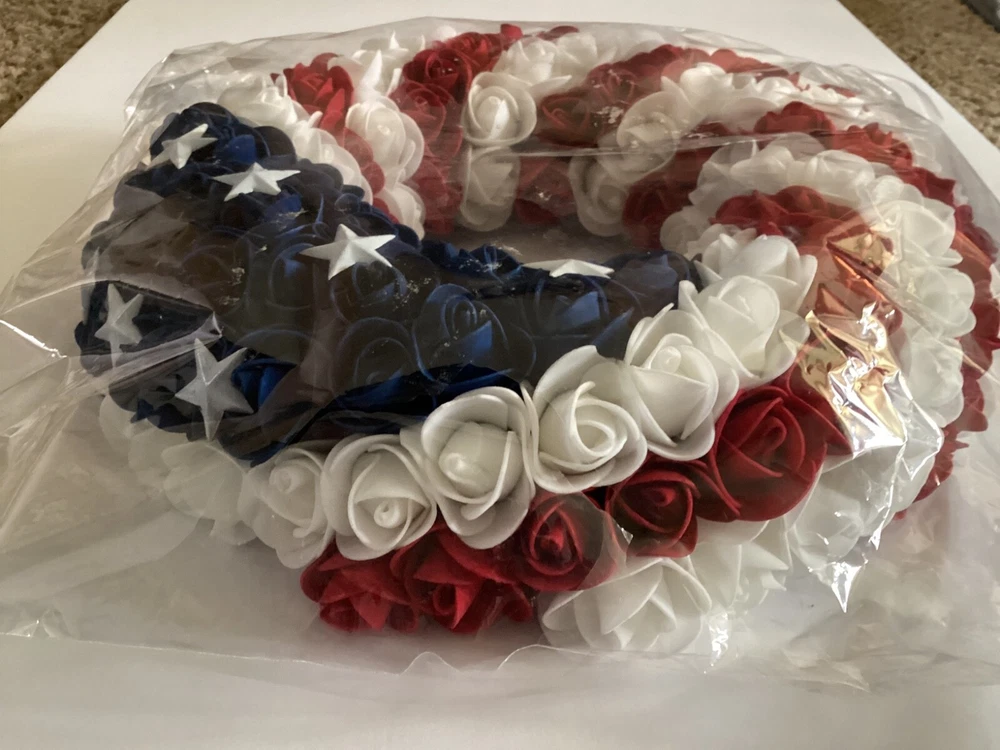 1. This wreath is stunning—perfect for showing patriotic pride! The foam roses and metal stars look high-quality, and the lightweight design makes hanging a breeze. The craftsmanship is impressive, and it’s versatile enough for doors, caskets, or grave decorations (though not weatherproof). Even with the bag opened for photos, it arrived in great condition. Love it!