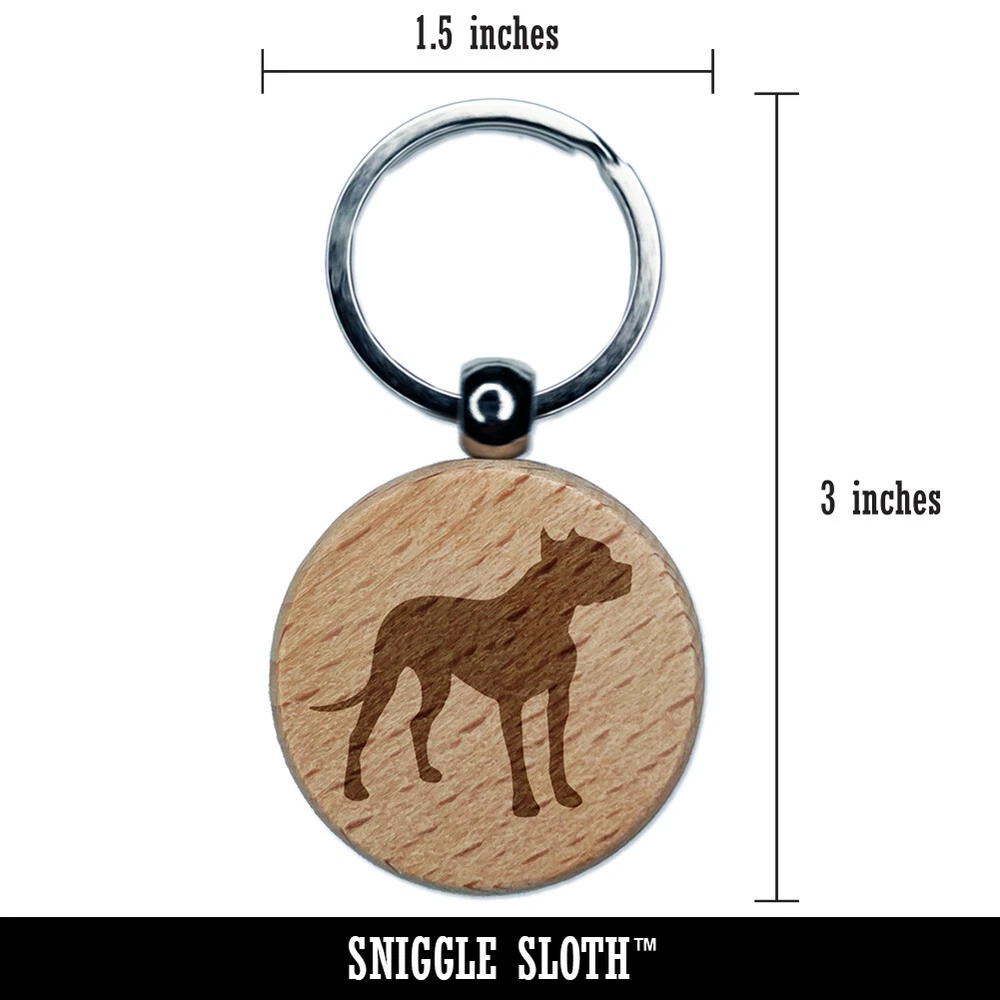 American Pit Bull Terrier Dog Solid Engraved Wood Round Keychain Tag Charm