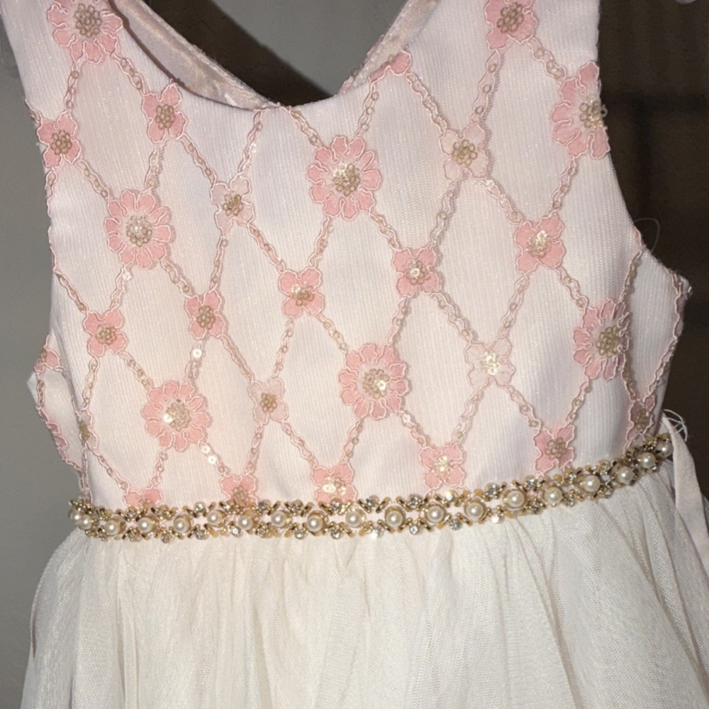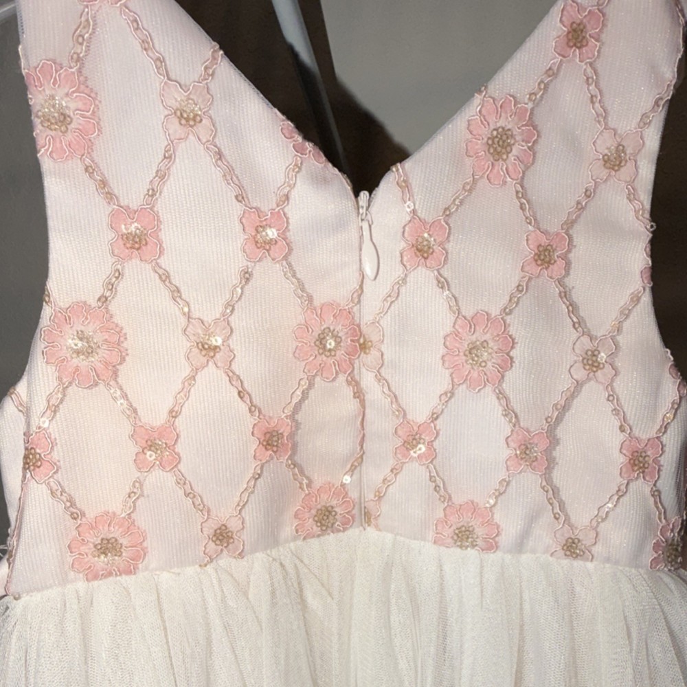 American Princess Ivory Pink Floral Tutu Dress Sleeveless Knee Length 4T Girls