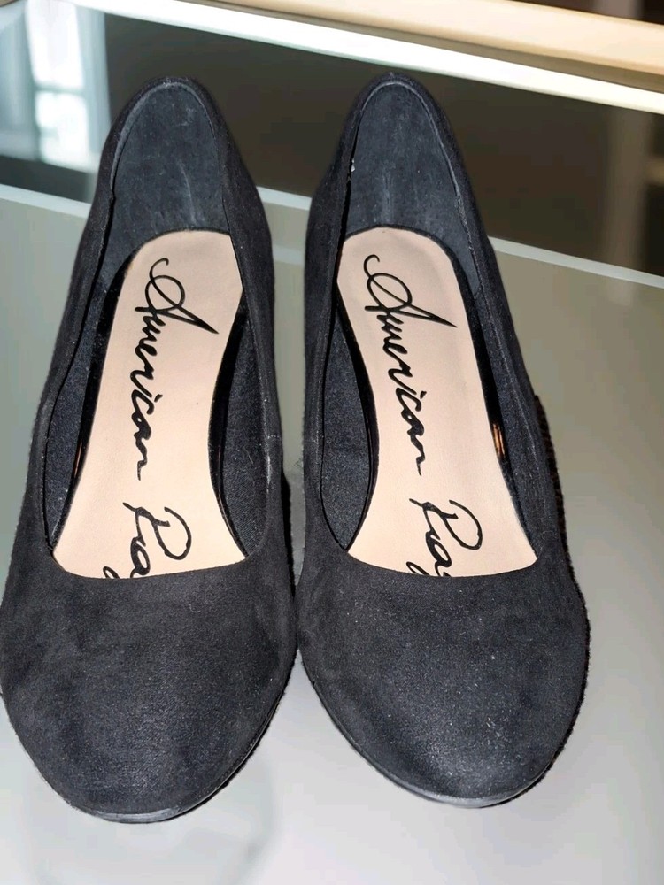 Elevate your ensemble with the American Rag Cie Women's Felix Pumps. Crafted with a sleek black suede upper and a comfortable cone heel measuring a chic 3 to 3.9 inches, these heels are the epitome of classic sophistication. The round toe design ensures a comfortable fit, making them an ideal choice for any day affair. The slip-on style of these pumps offers convenience without compromising on style, perfect for the woman on the go. Lightweight and crafted with a durable rubber outsole, the Felix heels are designed to provide both comfort and stability throughout the day. Whether it's for a casual event or a more formal gathering, these versatile pumps are a wardrobe staple for every season.