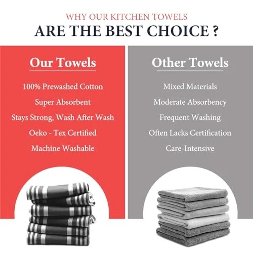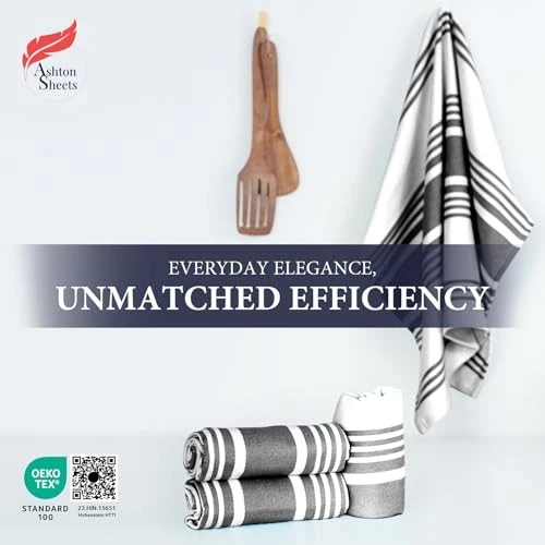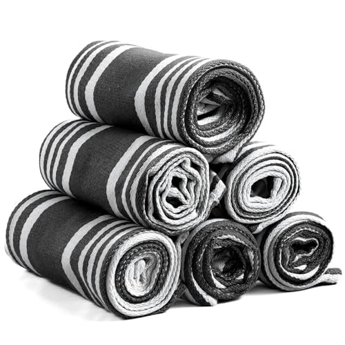 Return Policy Fast Delivery Trusted seller American Stripe Kitchen Towels 100% Cotton Pack of 6, Highly Absorbent Quick Drying, Soft Cotton Dish Towels 20x30 Inch for Kitchen with Hanging Loop - Black and White Tea Towel Product Description 100% Cotton Kitchen Towels with Timeless American Stripe Design: Made from premium quality, natural cotton, ' American Stripe Kitchen Towels combine vintage charm with modern performance. Woven in a classic stripe pattern, they add a pop of character and function to any kitchen space Super Absorbent & Quick Drying – No More Damp Odors: These lightweight cotton kitchen towels set soak up spills instantly and dry fast, preventing that unpleasant musty smell between uses. A reliable upgrade from paper towels and synthetic cloths Durable, No Lint, No Color Fade – Built to Last: Designed for everyday use, these cotton kitchen towels withstand frequent washes without pilling or losing their color. They’re lint-free, shrink-resistant, and easy to care for—just machine wash cold and tumble dry low Versatile for Kitchen & Beyond: Whether drying dishes, wiping down surfaces, or lining bread baskets, these multipurpose super absorbent kitchen towels are up for anything. Use them as dishcloths, tea towels, napkins, hand towels, oven mitt covers, or décor accents Set of 6 in Vibrant Colors – With Hanging Loops: Comes in a handy 6-piece pack (20 x 30 inches each) with a hanging loop for easy storage. Available in bold colors like Red, Ink Blue, Black, Aqua, Turquoise, Orange, and Brown—ideal for gifting or upgrading your own kitchen setup Shipping Returns Payment Shipping Shipping is FREE to all addresses other than APO/PO boxes in the lower 48 states. All our stock ships from US-based warehouses. Shipped via USPS or UPS (depending on location and package weight) Unless stated otherwise, all orders will ship within 24-72 hours of your payment being processed. Check our feedback to see the great reviews of FAST shipping we offer. Returns Seller does not accept returns Payment We currently accept payment via eBay managed payments only. Once payment is cleared, we will dispatch your shipment within 1-3 business days. Please refer to the "Shipping" tab for more information regarding shipping speed to your destination.