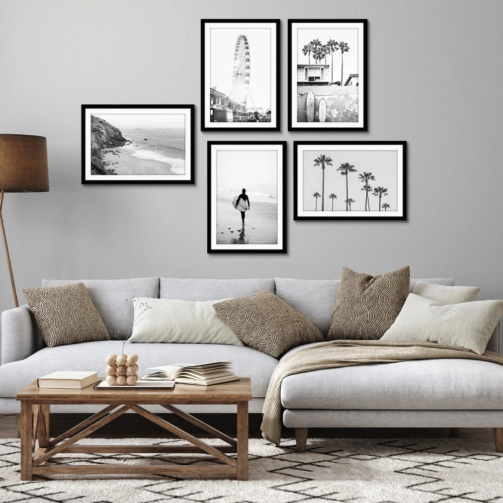Create a beautiful 5-print display gallery wall frame set with this 5-piece picture frame set. Each of these wall picture frames will display a print and can be used with or without the mat to frame photos or artwork. With their simple, elegant style, they can accentuate virtually any decor for a symmetrical gallery artwork display. We have included a mat in each poster frame, giving you the option to frame either photos or art with these 5 frames. The sturdy backboard keeps your artwork in place and prevents it from moving or warping. Each frame is made from a sleek polished plastic that is designed to go with all decor types and is suitable for home or office wall collage display. The cover is made from plexiglass which resists shattering and breaking and is also lightweight. For your convenience, each frame in this 5-piece picture frame set can be oriented either horizontally or vertically with the built-in hardware on the back. Our frames feature two sawtooth hangers on the back of each item for wall mount. Durable Build Quality - Our photo frame molding is made from high-quality polished plastic, with plexiglass covers that are designed to provide a very clear view and are resistant to breakage. Each frame cover comes with a protective film that should be removed before use. Comes With Mat - Our wall picture frames can be used with or without a mat, please note that the mat opening is ??” smaller than this size. Measure artwork before framing. Horizontal Or Vertical Display - This frame can be used in a variety of configurations, and the sawtooth hangers on the back of each frame enable you to hang either vertically or horizontally. A sturdy backboard on each frame keeps your artwork flat and in place. What's Included - A set of five black picture frames that includes a mat for a photo or art print, ideal gallery wall frames for photos or a collection of poster frames. Our simple, elegant frames, perfectly complement black-and-white photos and combines well with virtually any home decor theme to create beautiful collage frame displays. Display Your Cherished Moments - This beautiful modern picture frame is a great frame for displaying the pictures of your most cherished moments and loved ones for years to come.