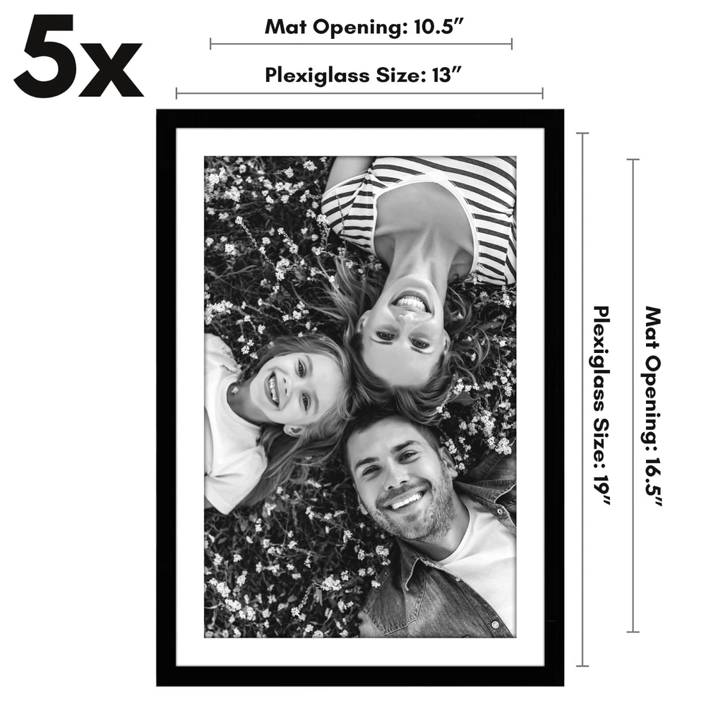 Americanflat 5 Pack of 13x19 Frames with 11x17 Mat - Plexiglass Cover - Black
