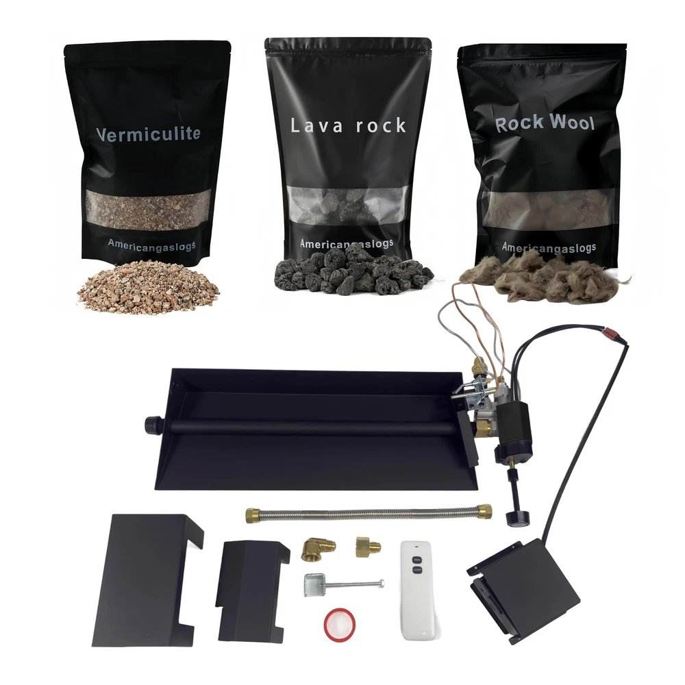 Americangaslos 18"-24" Burner Pan with Valve Remote for Gas Fireplace Gas