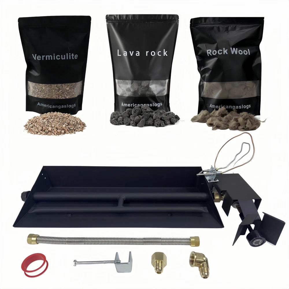 Americangaslos 18"-24" Burner Pan with Valve Remote for Gas Fireplace Gas Appearance Patent applied Americangaslogs Fireplace Burner and Pan, Durable Black Powder Coated Steel. Suitable for Natural Gas or Propane Gas Fireplace. If using for propane an air mixer valve must be installed. Include Burner Pan +Glowing ember+Copper connection kit+sealing tape+Gas fireplace valve+Pilot+Volcanic rock+vermiculite Pan Dimensions: 22"L x 6."x W2.5" H plus 3/4" L x NPT 1/2" Male connection hubs on both ends It is applicable to all gas fireplaces on the market You can use it with gas log Gas fireplace Log fireplace gas Log Burner Pan for Gas Fireplace Propane Burner Gas fire pits Gas Logs Gas fireplace Logs fireplace gas Logs gas fireplace burner gas fireplace pipe gas log set fireplace pipe gas fireplace insert vented gas log Our Burner Pan outperforms most products on the market and uses a universal NPT 1/2 connector. We have 18 inches, 22 inches, 30 inches three sizes to choose from. . Equipped with a valve, allowing you to control the size of the flame Shipping We offer FREE shipping on all orders! We ship within Three business days of payment, usually sooner. We use a selection of shipping services such as UPS, FedEx, USPS etc. We only ship to the lower 48 states, no APO/FPO addresses or PO Boxes allowed. Local pickups and combined shipping options are not provided at this time. Return You can return a product for up to 30 days from the date you purchased it. Any product you return must be in the same condition you received it and in the original packaging. Please keep the receipt. Payment We accept payment by any of the following methods: PayPal Please pay as soon as possible after winning an auction, as that will allow us to post your item to you sooner! Feedback Customer satisfaction is very important to us. If you have any problem with your order, please contact us and we will do our best to make you satisfied. Contact Us If you have any queries, please contact us via ebay. We usually respond within 24 hours on weekdays. Please visit our eBay store to check out other items for sale! Thank you for shopping at our store.
