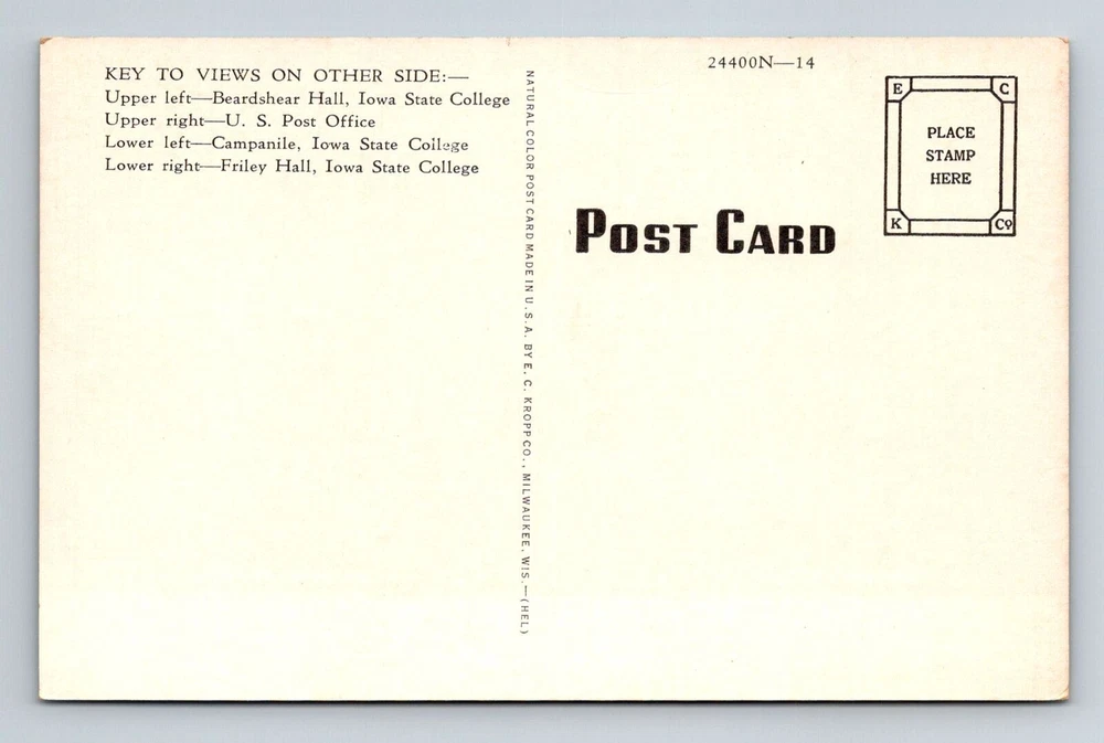 Subject: Cities & Towns Region: Iowa Type: Printed (Lithograph) Original/Licensed Reprint: Original Theme: Cities & Towns Country: USA Era: Vintage City: Ames Country/Region of Manufacture: Unknown Postage Condition: See Image Unit of Sale: Single Unit