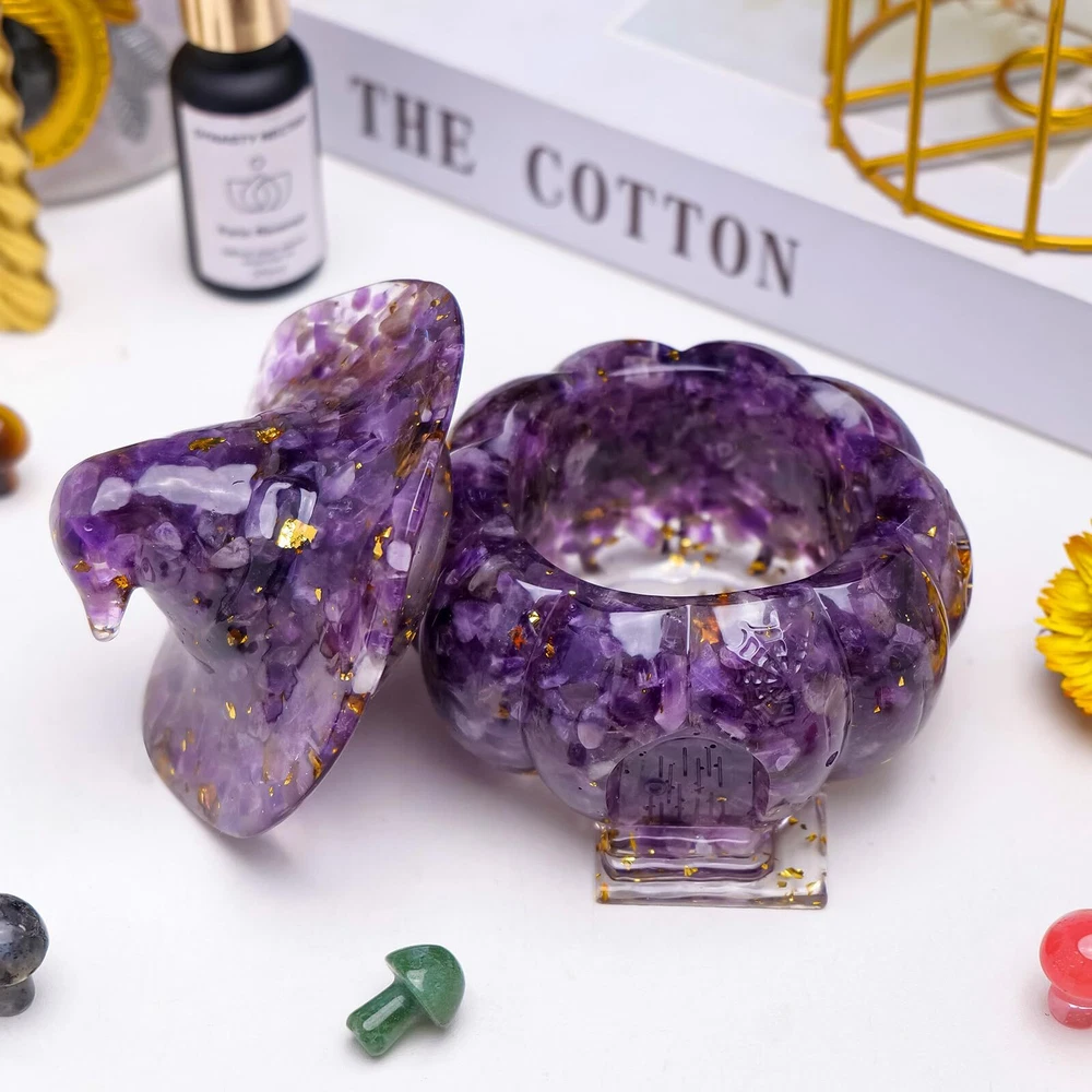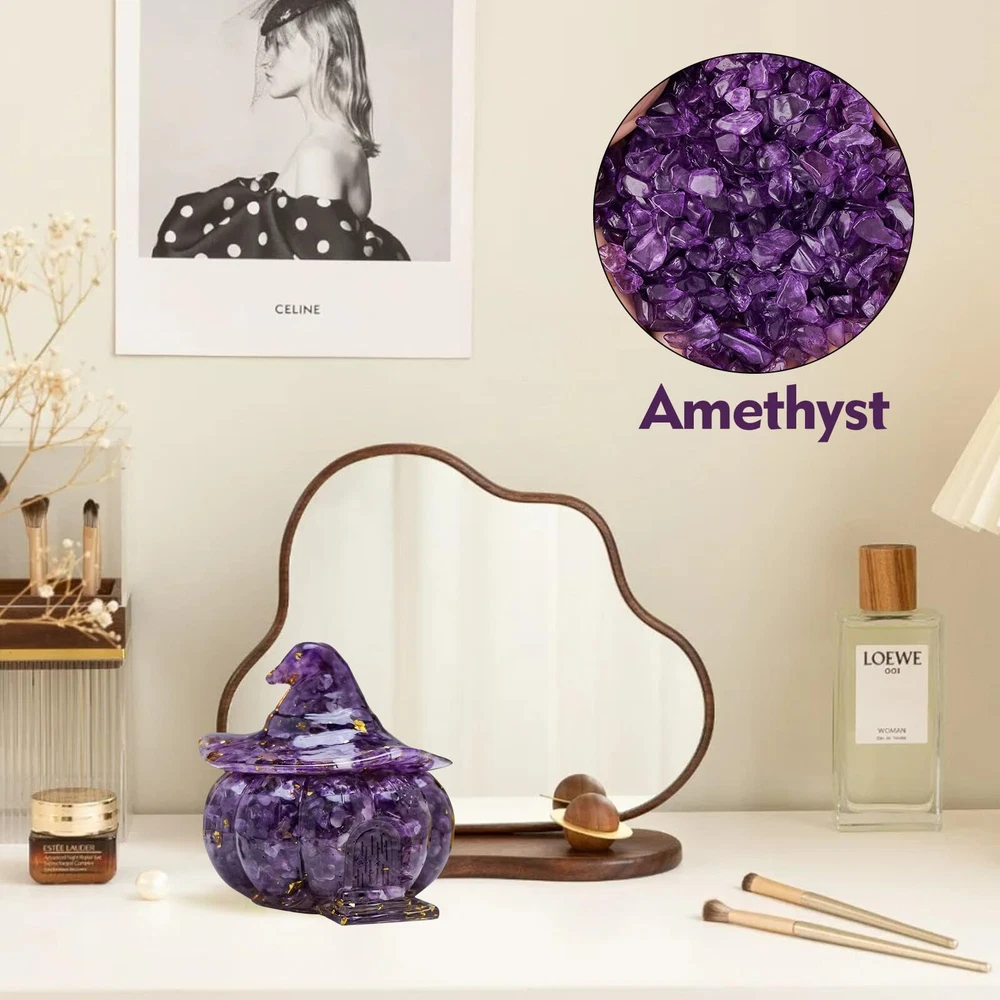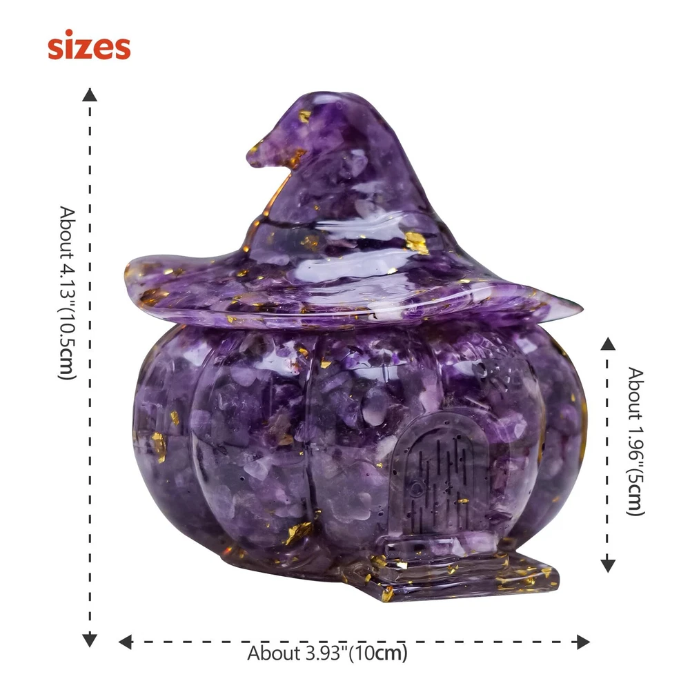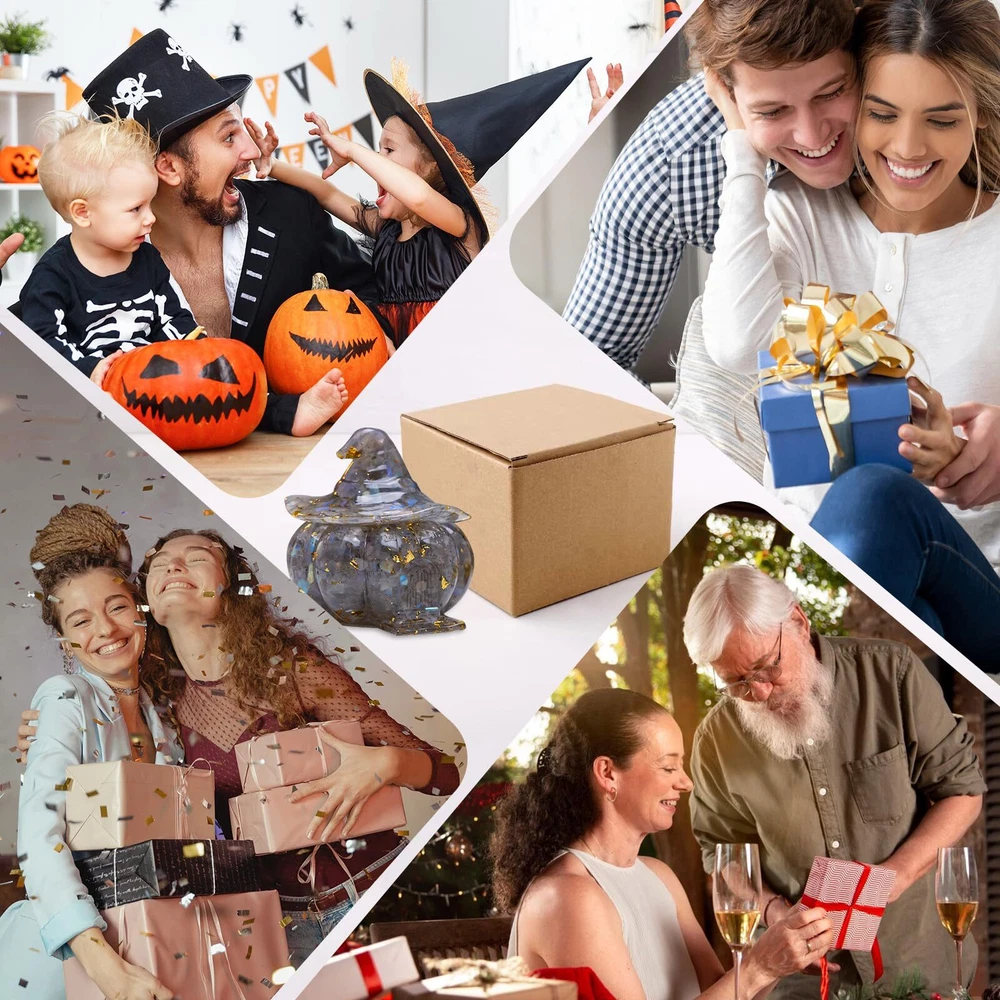 What you will get :1 PCS Halloween Pumpkins Resin Jewelry Box Decorations. Size about 4.13"*3.93",Inside diameter depth approx. 1.96 ".Material is Red Jasper,Tiger's Eye,Cat Eyes(Colorful Crystal Shells),Rose Quartze,Amethyst,Citrine,Green Aventurine,Labradorite.Lapis Lazuli ,Shells. Due to the combination of resin and gravel crystal process, the color and pattern of each Pumpkins is completely unique. About Pumpkins: Pumpkins are an important symbol of Halloween. Pumpkins are usually carved into various shapes and placed in front of homes to ward off evil spirits and lead the spirits of departed clansmen back. Legend has it that pumpkins can scare away evil spirits or demons. About Crystals:Healing crystal is a type of alternative therapy that involves using gemstones to bring balance to an individual's life and mind. Gift:A gem with powerful restorative powers that can connect the worlds of humans and elves, allowing the user to peer in and receive different information. Giving this excellent gemstone to family and friends, making it as an ornament for your office or home is one of the best choices. Resin Crystal Crafts: Some small bubbles may be generated during the production process due to layered pouring, and the edges will be a little uneven after the curing is completed. It is recommended to avoid direct sunlight and high-temperature environments when storing resin crafts.