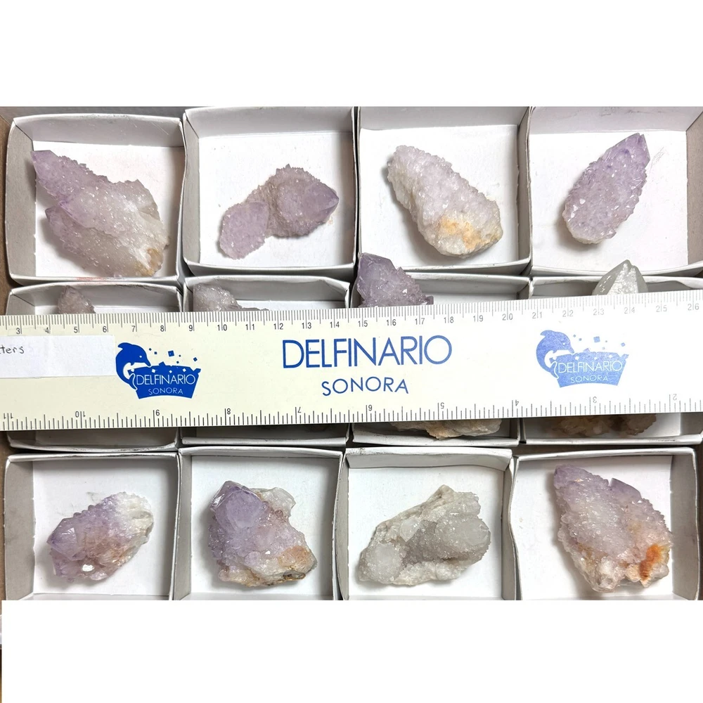 Cactus Quartz or Spirit Quartz View My Other Items For Sale Visit My eBay Store Add me to your Favorite Sellers A cactus or spirit quartz is a quartz crystal that is encrusted by a second generation of smaller crystals grown on its prism faces. These crystals were first discovered in 1986 in the Magaliesberg Mountain Range near Pretoria, South Africa. It occurs as quartz, citrine and amethyst, and comes in a wide range of colors, including purple amethyst, violet amethyst, smoky, milky clear and golden citrine. FAQ/Tips Crystals are priced by quality, color and size. Purple amethyst is more highly prized and will cost more for a smaller lesser quality crystal. Lavender is the most common color and where you will find the best quality/value for price Crystals change colors with changes in type angle and intensity of light. Color may also vary between monitors. Pictures were taken in bright natural light. We do our best to give you many views so you can judge the quality of the given crystals. If you have questions please ask before bidding or buying. Many of the crystals have special color properties: Many have phantoms, not just the ones we’ve indicated. Some have “floating” purple tips. The placement of darker purple against purple or white crystals appears to change as the crystal is turned. Many are a mixture of citrine and amethyst. The ones called “Golden Healers” or “Sunshine” have a rainbow effect on crystal faces.