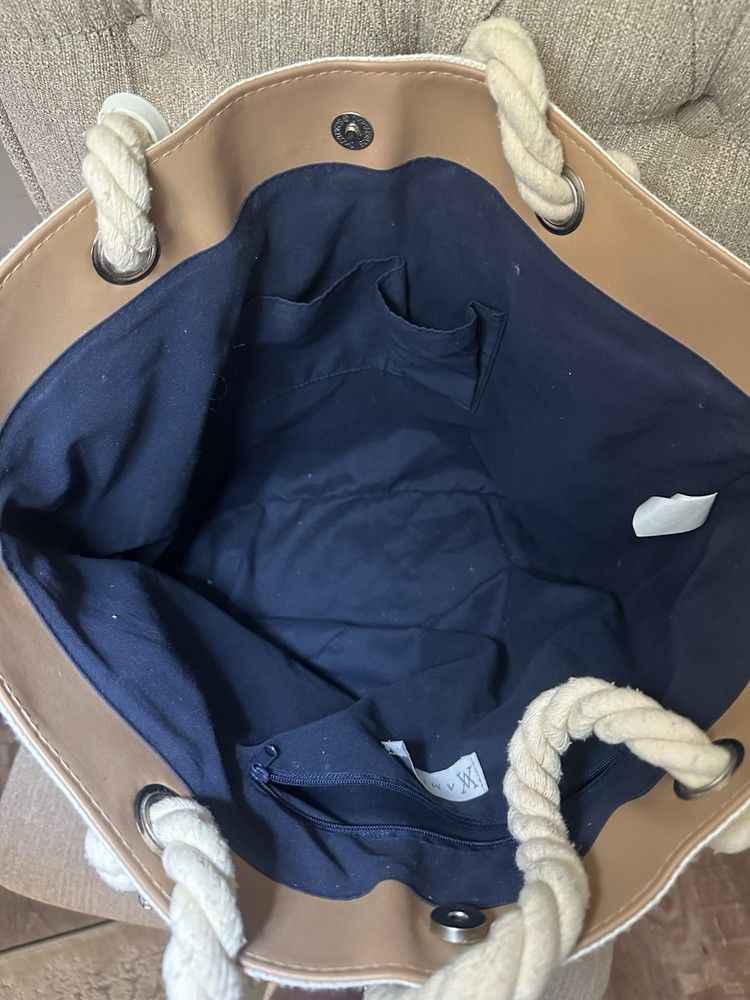 Amiana Large Beach Tote Bag Blue And White With Rope Handles EUC