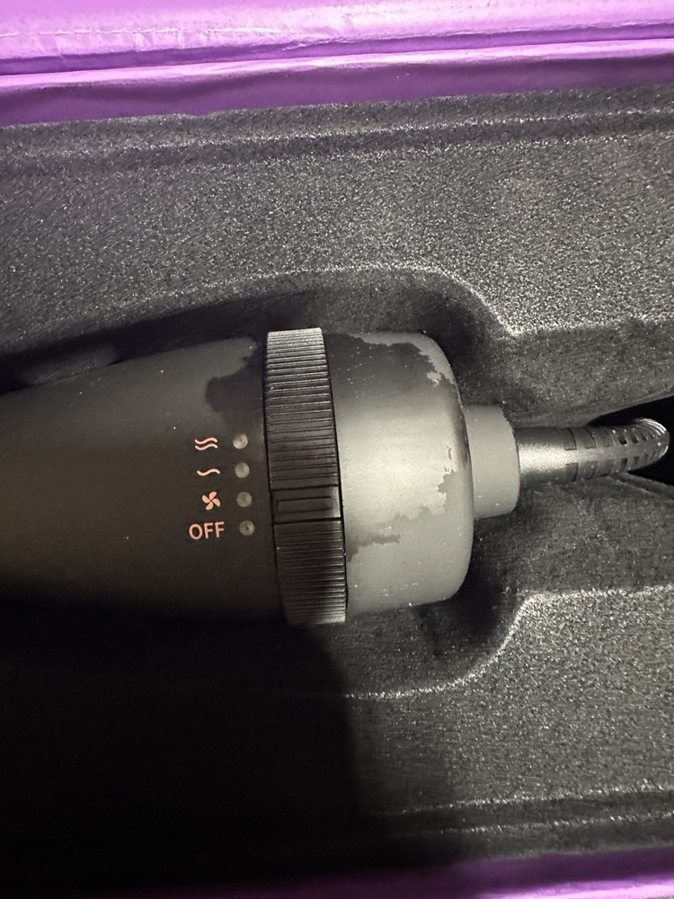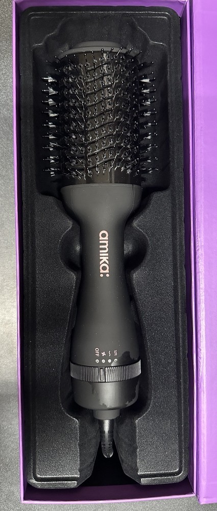 This is new and we selected used because we notice that the color from the manufacture has a defect. Picture provided and we have discounted this by 50% Amika Hair Blow Dryer Brush.