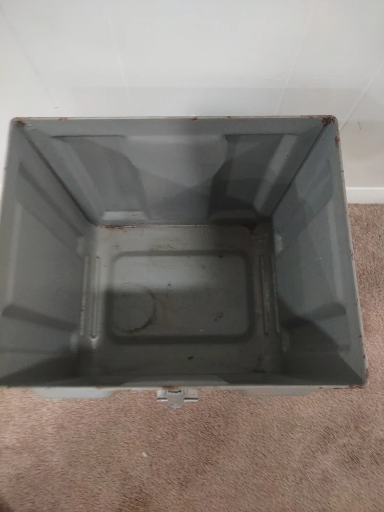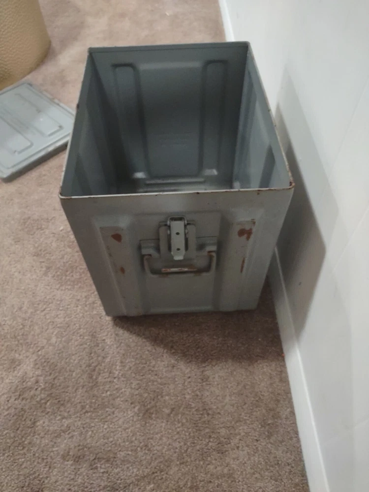 it has lots of scratches all around it and but lid still fits and All of the latches are intact and working.