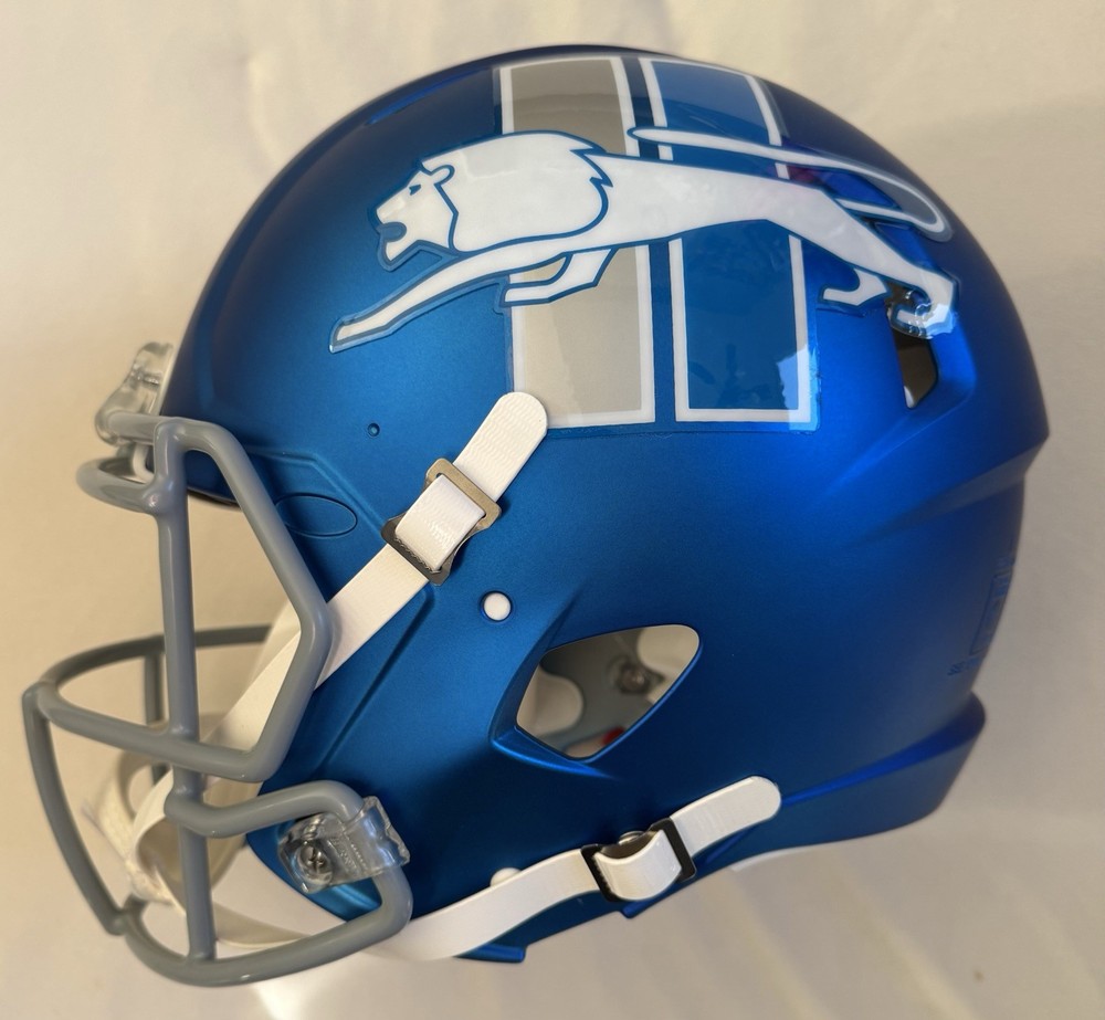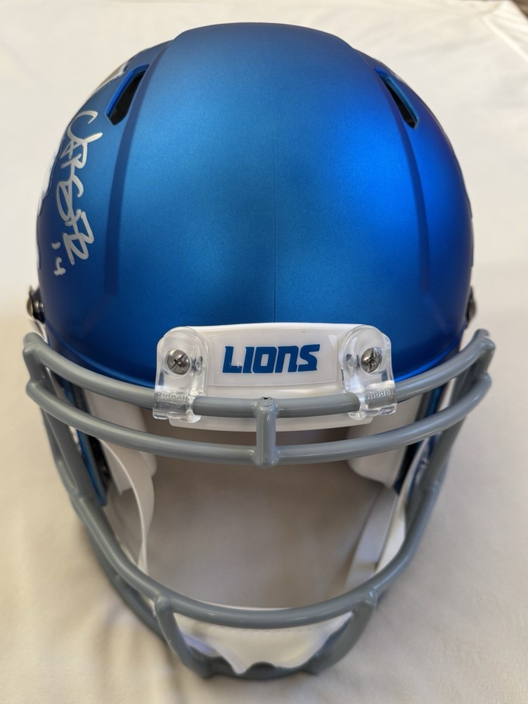 The product is an authentic Detroit Lions helmet signed by Amon Ra St. Brown, a player from the NFL. The autograph has been authenticated by Beckett Authentication Services (BAS). This item is a valuable collectible for fans of the Detroit Lions and football enthusiasts, featuring the signature of a standout player in the league. The helmet serves as a unique and personalized piece for display or memorabilia purposes.