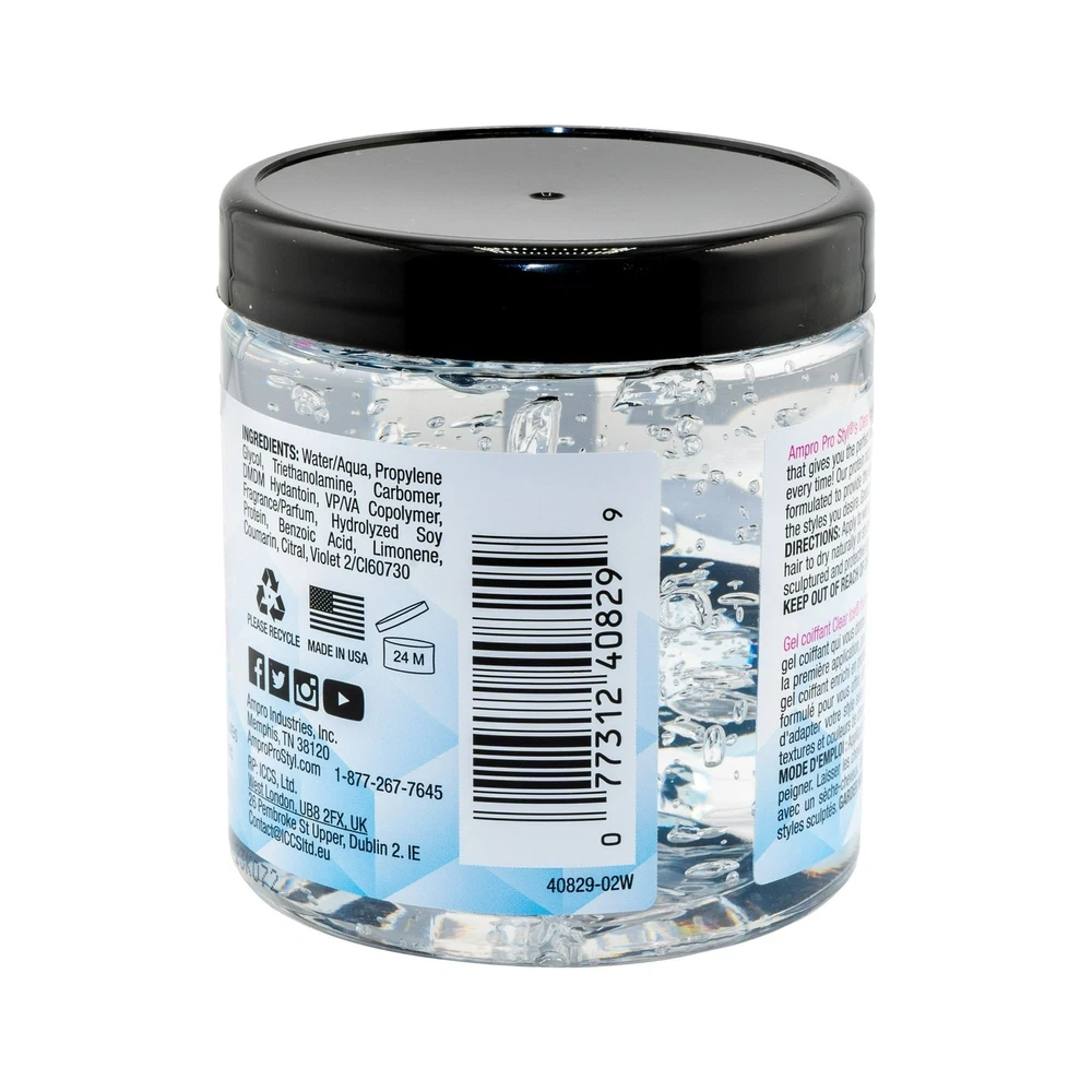 Product Description Ampro Clear Ice Ultra Hold Styling Gel for Resistant Hair Textures 8.8oz (6 Pack) Clear Ice Ultra Hold Protein Styling Gel is a vegan, alcohol-free styling gel designed to provide ultra-hold for even the most resistant hair textures. The updated formula is creamy smooth, making it easy to distribute through hair and perfect for layering. With soy protein that bonds with hair’s natural amino acids, this gel may help strengthen hair, encourage growth, and reduce breakage. Additionally, special emollients help protect hair during thermal styling. This unisex product is suitable for both women and men. Ultra-hold styling gel gives the extra control needed for the most resistant hair textures. Protein rich formula provides thermal protection and helps strengthens hair Non-flaking styling gel adds a non-greasy, healthy-looking shine to all hair textures and hair colors. Vegan formula is alcohol and paraben free Clear Ice Ultra Hold Gel is ideal for men and women with textured hair who need extra control Alcohol-free formula that adds beautiful shine. Great for sculpted hair styles. Moisturizing Unisex Ingredients Aqua, Propylene Glycol, Triethanolamine, Carbomer, DMDM Hydantoin, VP/VA Copolymer, Fragrance, Hydrolyzed Soy Protein, Benzoic Acid, Limonene, Coumarin, Citral, Violet 2/CI60730