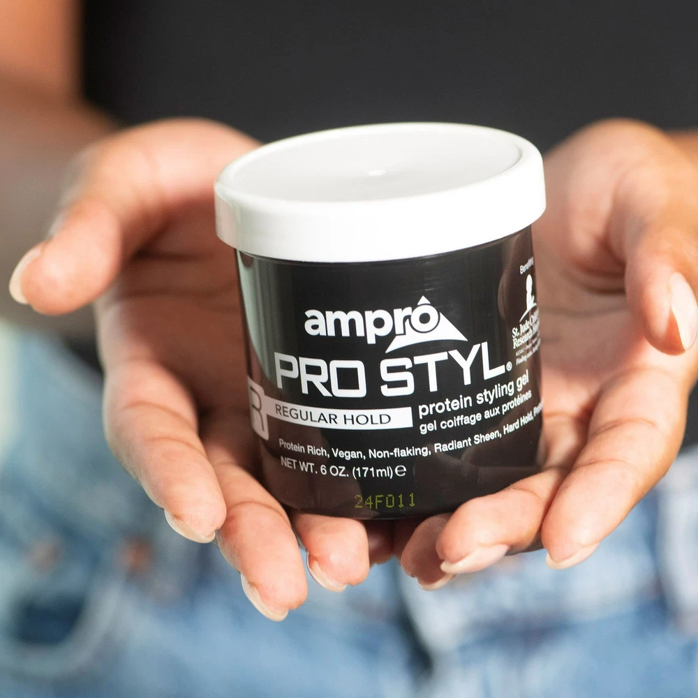 Product Description Ampro Pro Styl Regular Hold Protein Hair Styling Moisturizing Gel, Unisex, 6oz (24 Pack) Ampro Pro Styl Regular Hold Protein Unisex Styling Gel - because you want a styling gel that gives you the perfect look the first time, every time! Our legendary vegan, alcohol-free styling gel is uniquely formulated to provide the hard, firm hold you need to achieve the styles you desire. This gel is designed for sculpting and molding hair styles and for protective hair styles with resistant hair textures. SAY GOODBYE TO FLYAWAYS. With this wonder-working gel, you can define your natural hair and tame lose strands with a firm, non-greasy hold, while also giving your hair a fresher, healthier shine. PROTEIN RICH FORMULA. Strengthen your hair with this protein-enriched gel, to boost your hair's resilience and leave it looking and feeling healthy. It protects your hair during styling and is great for natural hair and textured styles. GOODBYE FLAKES AND GREASE. Enjoy soft, manageable waves and curls by using this non-greasy gel. The moisturizing formula is non-flaking and distributes easily throughout your hair, to help create any hairstyle on any hair texture. A LEGACY PRODUCT LINE. Ampro, which stands for American Products, is a leading beauty manufacturer, established since 1947. We produce top-quality personal care products for hair, body, and skin, free of alcohol, parabens, sulfates, and dyes. MULTICULTURAL HAIR CARE PRODUCTS. Ampro is continuously expanding its hair care line by adding exciting new products, like our Shine 'n Jam Magic Fingers, the Ampro Pro Styl Olive Oil Styling Gel, and our newest kid's line, Ampro's Beautiful Child. Ingredients Water/Aqua, Carbomer, Sodium Hydroxide, Caramel, Propylene Glycol, DMDM Hydantoin, Fragrance/Parfum, Hydrolyzed Soy Protein, Benzoic Acid, Limonene, Iodopropynyl Butylcarbamate, Coumarin, Citral, Linalool, Citronellol