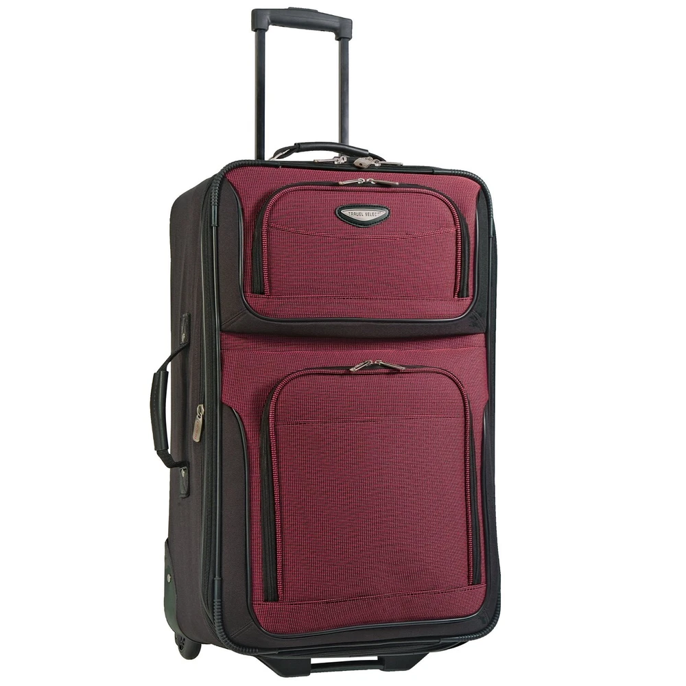 Description Travel in style with this Amsterdam II 8-piece luggage set. The set is made of 1200 D 2-tone polyester. Each suitcase features expandability, telescopic handle system, recessed inline skate wheels, add-a-bag strap, and full interior lining. The travel tote bag has adjustable shoulder strap with padded handle. The packing cubes have solid matte finished metal pulls that make opening and closing easy. Mesh top panel is great for easy identification of contents and ventilation. The soft mesh won't damage your delicate fabrics. Dimensions: large suitcase 29 inches high x 17 inches wide x 10 inches deep (expands to 12 inches deep). Medium suitcase 25 inches high x 15 inches wide x 9 inches deep (expands to 11 inches deep). Small suitcase 21 inches high x 13 inches wide x 7.5 inches deep (expands to 10 inches deep). Travel tote: 15 inches high x 11 inches wide x 6 inches deep. Extra-large packing cube: 15 inches high x 12.5 inches wide x 4 inches deep. Large packing cube: 13 inches high x 10.5 inches wide x 4 inches deep. Medium packing cube: 11 inches high x 7.5 inches wide x 4 inches deep. Small packing cube: 9 inches high x 6.5 inches wide x 4 inches deep. Deluxe set includes four packing cubes to help organize your belongings while offering luxury and durability Luxurious superior two-tone polyester fabrication with PVC backing , Deluxe internal retractable push-button handle system In-line skate wheels with corner protectors, expandable feature on all uprights Multiple front zippered pockets, comfortable top and side carry handles, bag clasp for toting additional bags 29” Upright: 29” H x 17” W x 10” D (expands to 12 in. D); 9.5 lbs., 25” Upright: 25” H x 15” W x 9” D (expands to 11 in. D); 8.5 lbs., 21” Upright: 21”H x 13” W x 7.5” D (expands to 10 in. D); 7.7 lbs.; Travel tote: 15” H x 11” W x 6” D; 2 lbs. Extra-large Packing cube: 15” H x 12.5” W x 4” D; Large Packing Cube: 13” H x 10.5” W x 4” D; Medium Packing Cube: 11” H x 7.5” W x 4” D; Small Packing Cube: 9” H x 6.5” W x 4” D