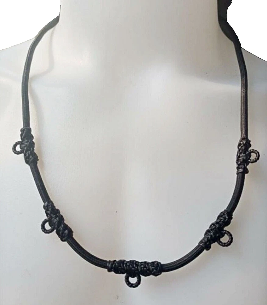 Necklace Thai Buddha Amulet length 28”, can hang 5 Buddha amulets. New Quantity : 1 pc Length : 24" - 28" 5 Hook Condition : good condition Add some luck to your life with this beautiful handmade necklace from Thailand. The black rope necklace features a 5-hook amulet pendant with a Thai Buddha design. The necklace is 28 inches long and is perfect for meditation or everyday wear. This necklace is a great gift for anyone interested in Buddhism or spirituality. It is made with care and attention to detail, making it a unique and special piece. The necklace is also perfect for collectors of prayer beads or other religious items. Add this beautiful necklace to your collection today and bring some luck into your life.