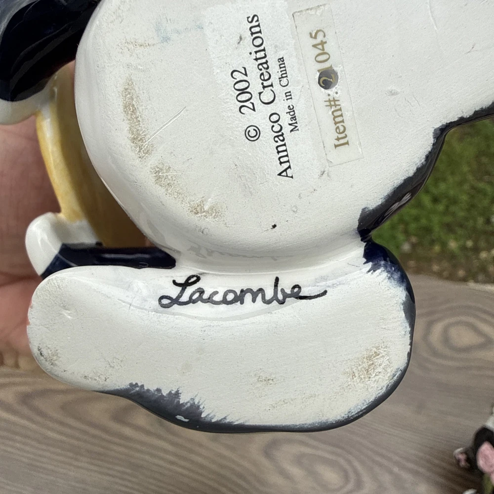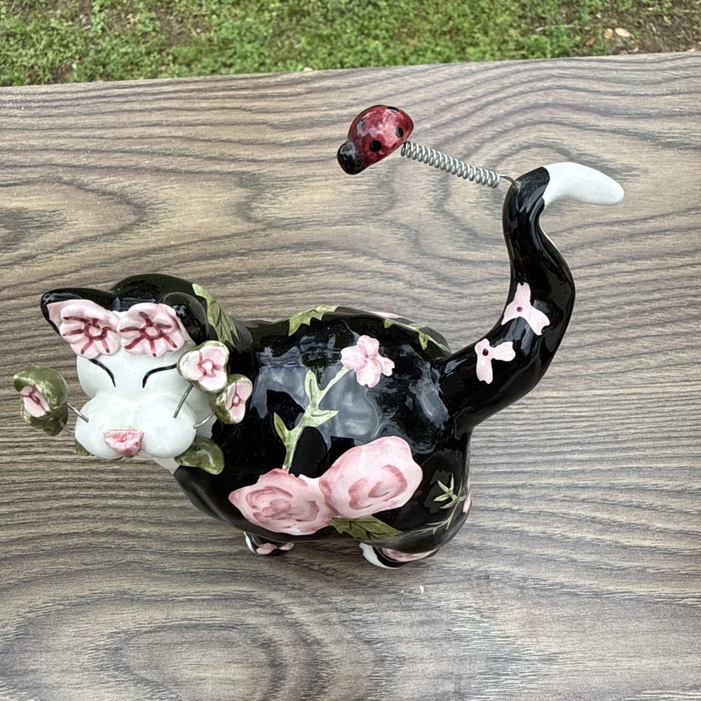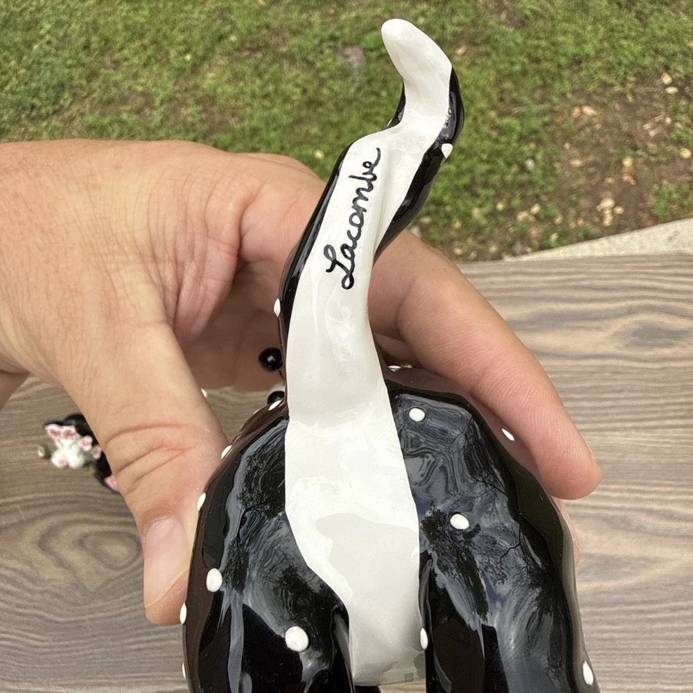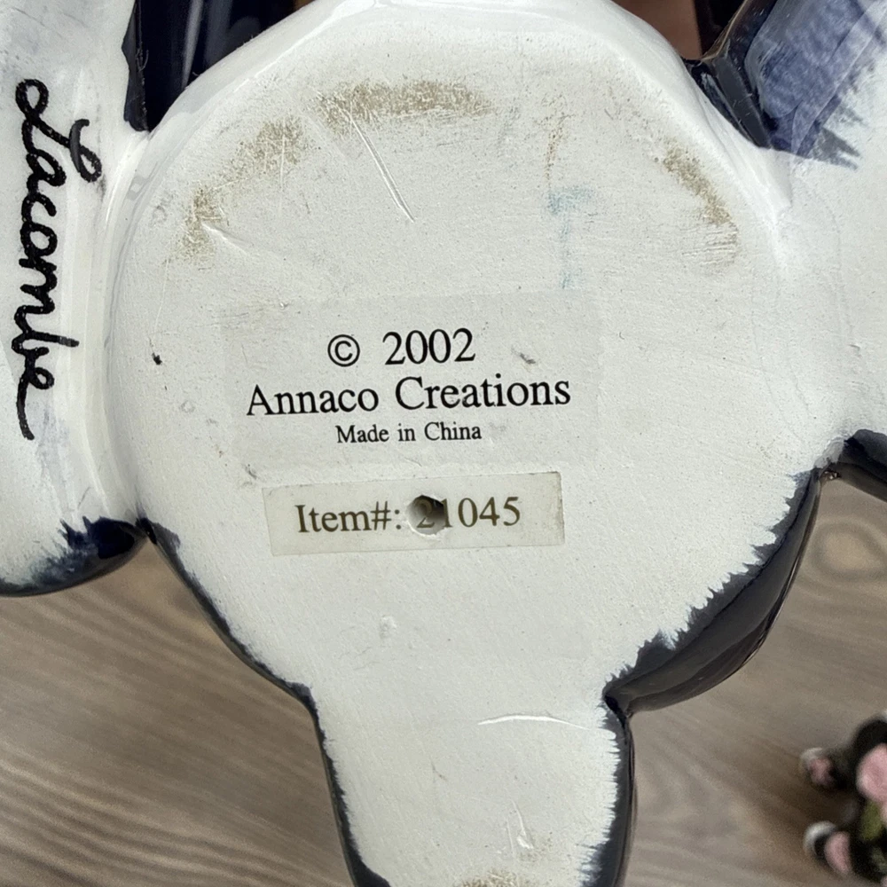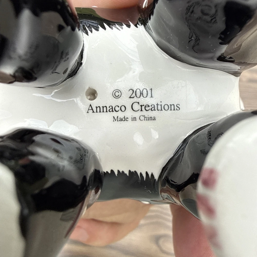 The Amy Lacombe WhimsiClay Cats Figurines #21045 #24807 and unnubered are charming collectible figurines of cats made of clay. Designed by Amy Lacombe, these whimsical figurines feature cats with a moon and floral dot design, adding a playful touch to any cat lover's collection. Made in China, these figurines capture the essence of the brand's playful and unique style, making them a delightful addition to any cat-themed decor.