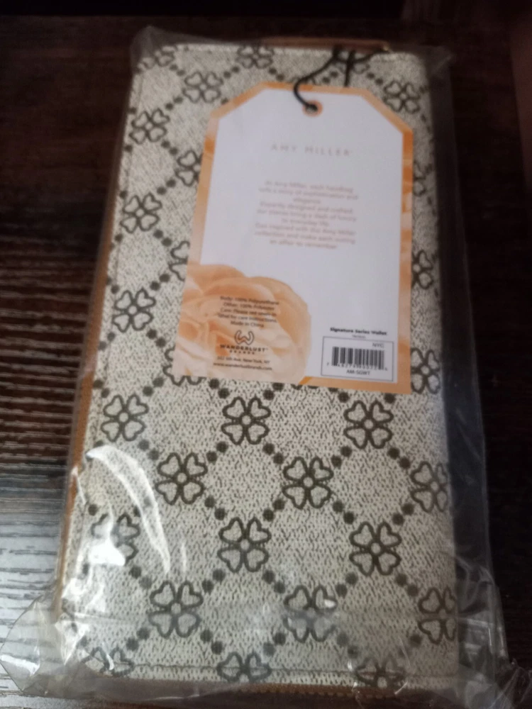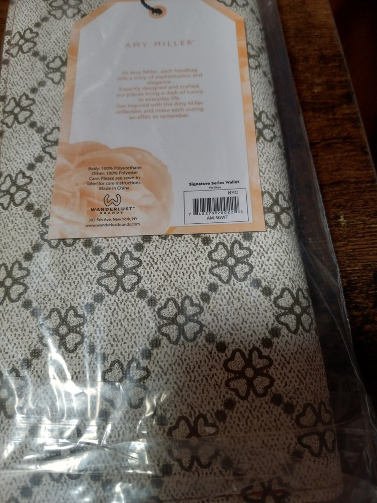 Amy Miller Designer Signature Series WALLET new with tag & and inside clear bag This Amy Miller Designer Signature Series wallet is a must-have for any fashion-savvy woman. With its zip-around style and beautiful beige color, it is the perfect accessory to complete any outfit. The wallet features a unique 4 leaf clover theme, making it a one-of-a-kind piece. Crafted with high-quality materials, this wallet is brand new with tags and comes with an inside clear bag for added protection. It is the ideal choice for those who want to make a statement with their accessories. Perfectly suited for any occasion, this Amy Miller Designer Signature Series wallet is a true standout piece in any collection. Thank you for taking the time to shop with me. Live Laugh Love BUY IT! 🛍🎁 Your purchase will be greatly appreciated 🙏 Seniors can make some extra 💰 money in retirement by selling items online.