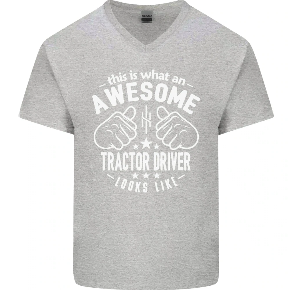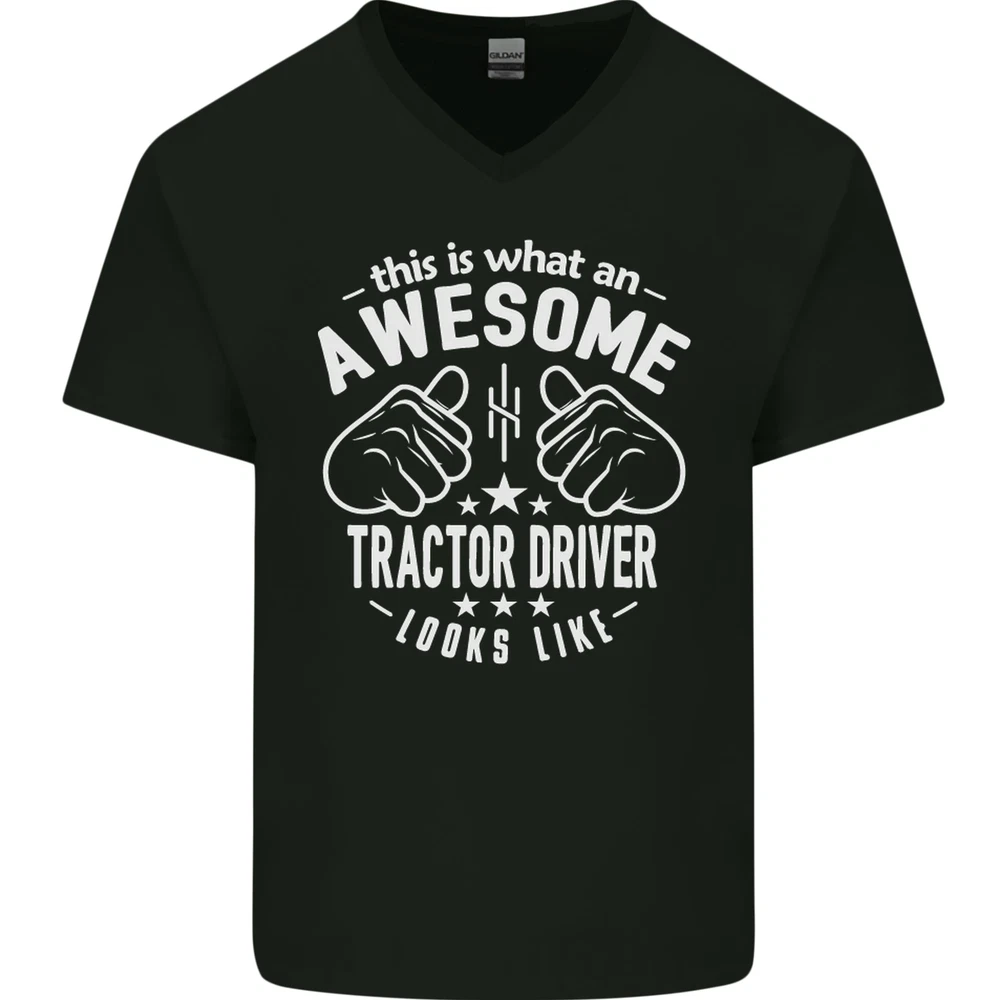 An Awesome Tractor Driver Looks Like Mens V-Neck Cotton T-Shirt