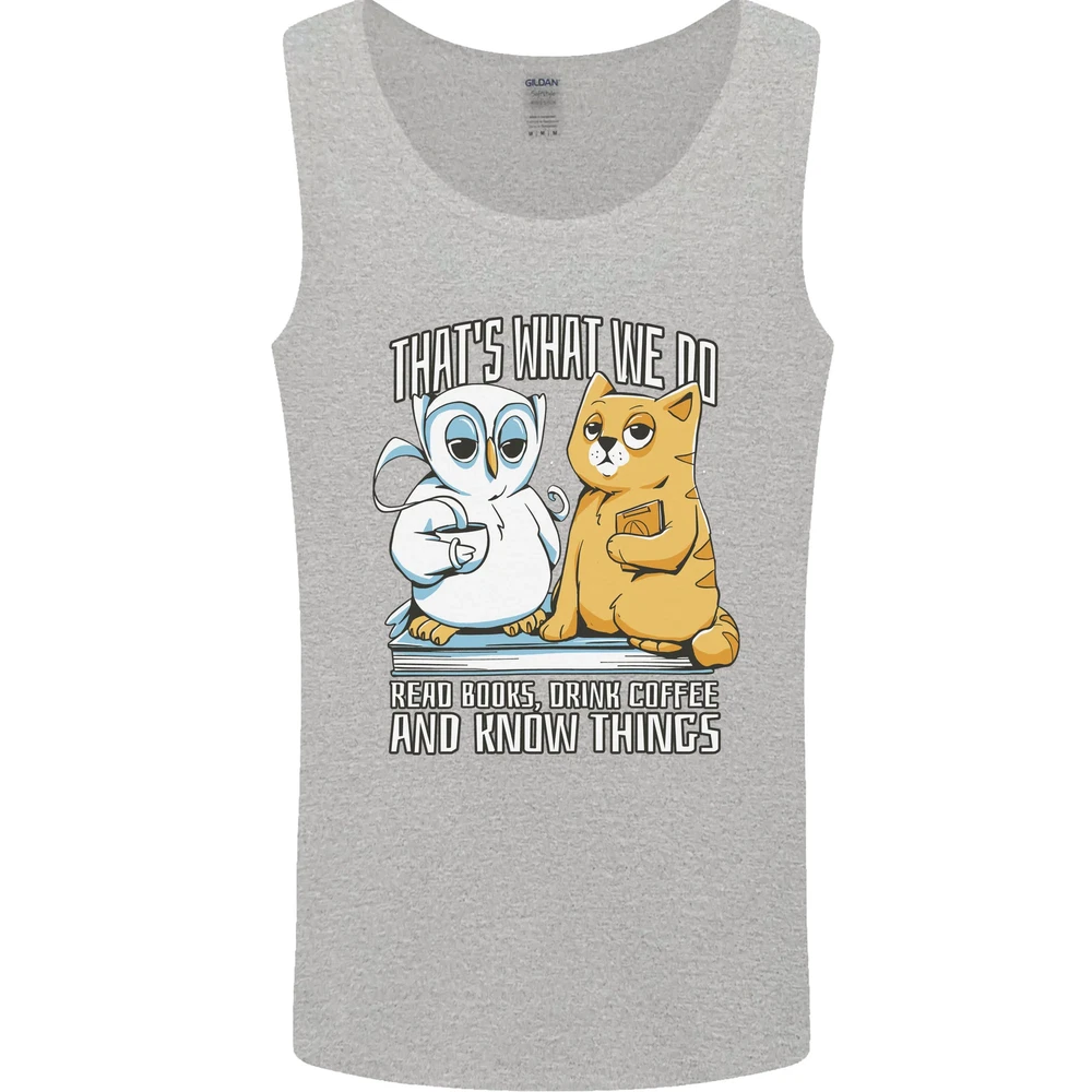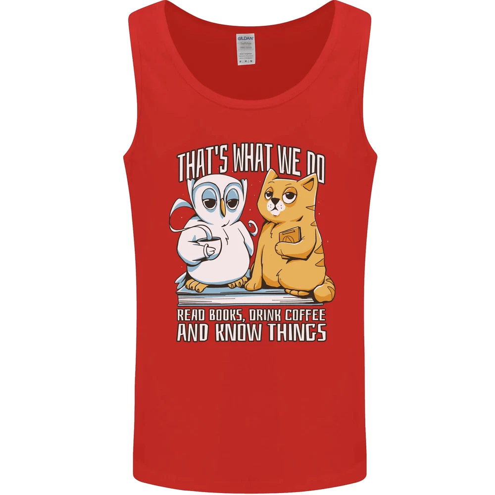 An Owl & Cat Book Reading Bibliophile Mens Vest Tank Top