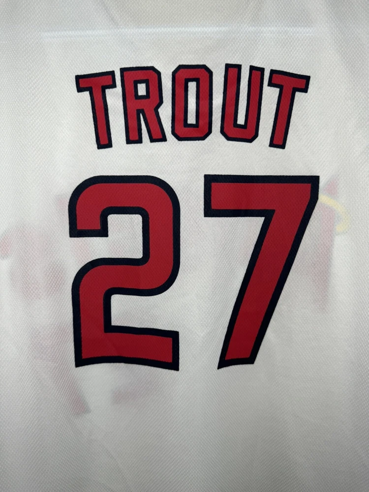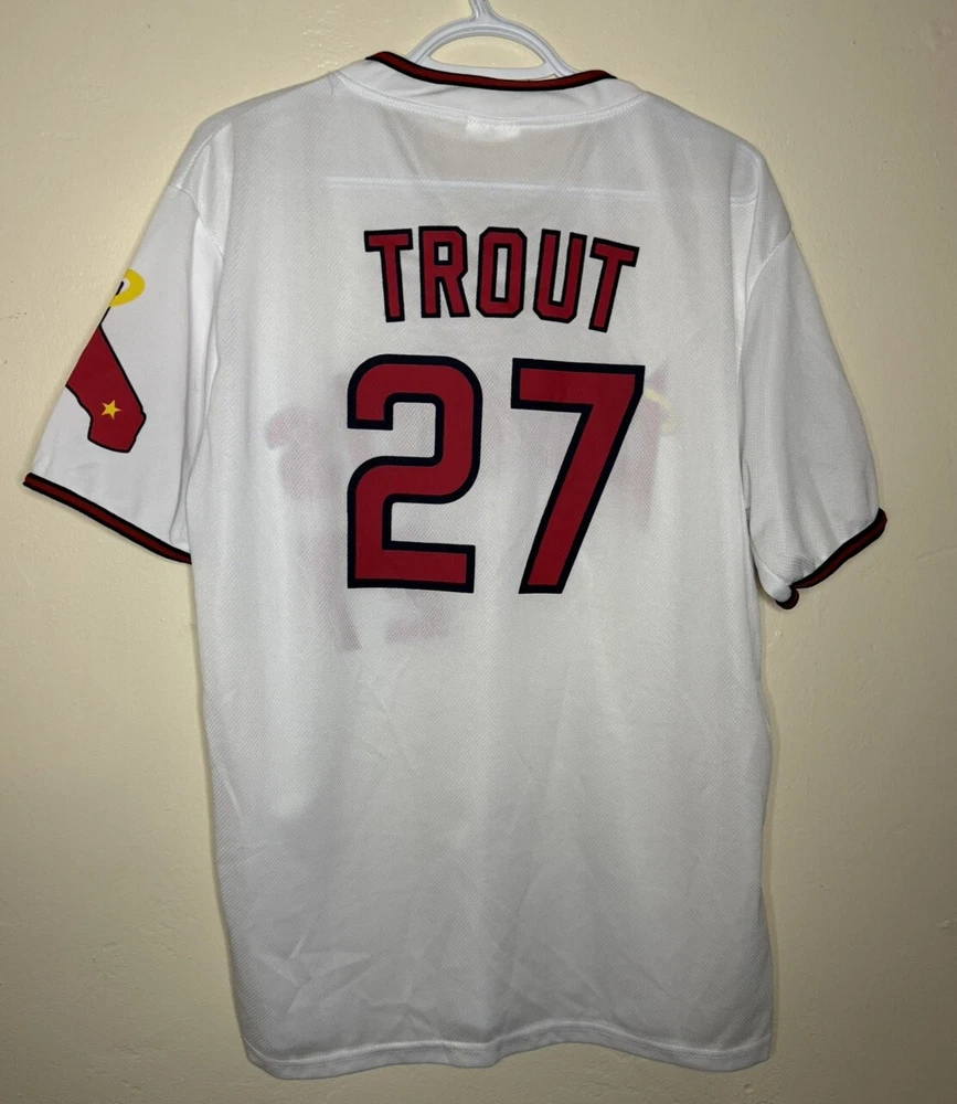 Player: Mike Trout Team: Anaheim Angels Sport: Baseball League: Major League (MLB) Country/Region of Manufacture: China Event/Tournament: World Series Size: XL Color: White Gender: Men Product: Shirt Brand: Kloanz