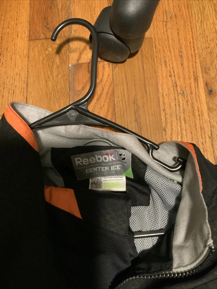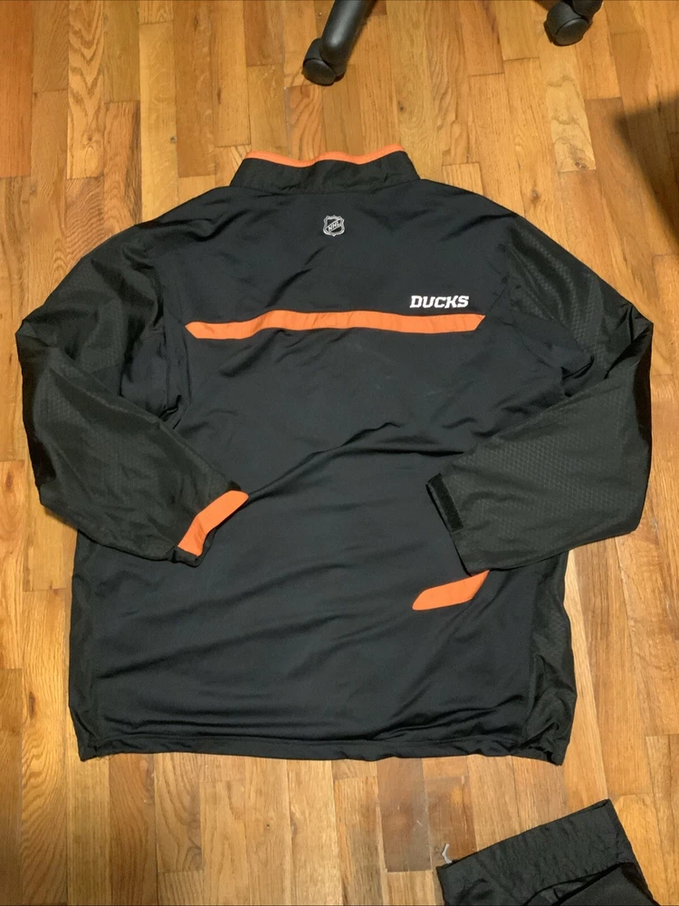 Get ready to cheer on your favorite NHL team with this Reebok Center Ice Windbreaker Jacket and Pants set in size 2XL. This officially licensed set is perfect for any fan of the Anaheim Ducks, and features the team's colors and logo prominently displayed on both pieces. The jacket and pants are made from high-quality materials, ensuring that you stay warm and comfortable while watching the game. Whether you're at the arena or just out and about, this set is sure to show your team spirit.